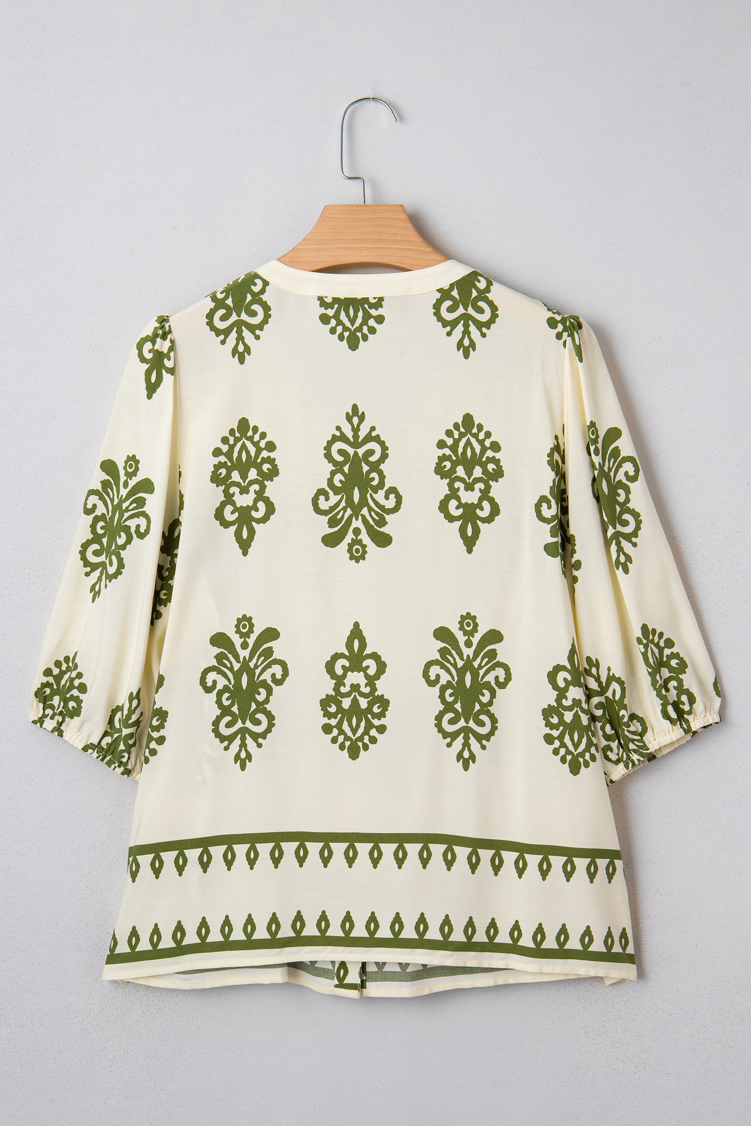 Boho Abstract Tie V-Neck Puff Sleeve Shirt