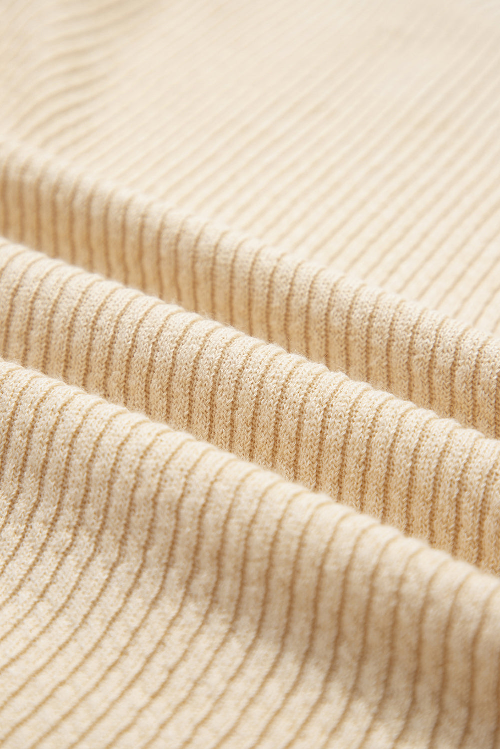 Leopard Patchwork Sleeve Ribbed Knit Scoop Neck Top
