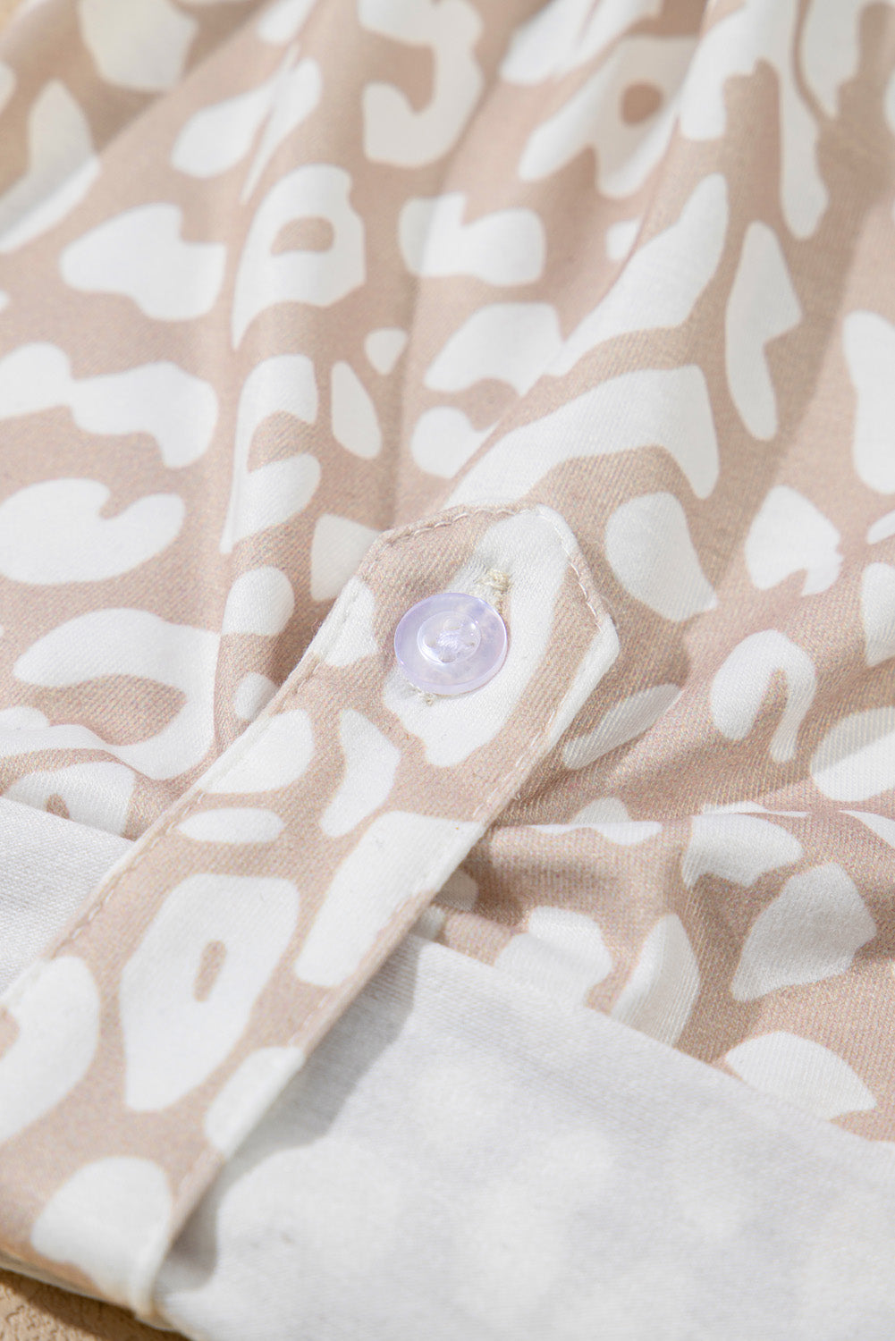 Plus Size Leopard Tab Sleeve V-Neck Top