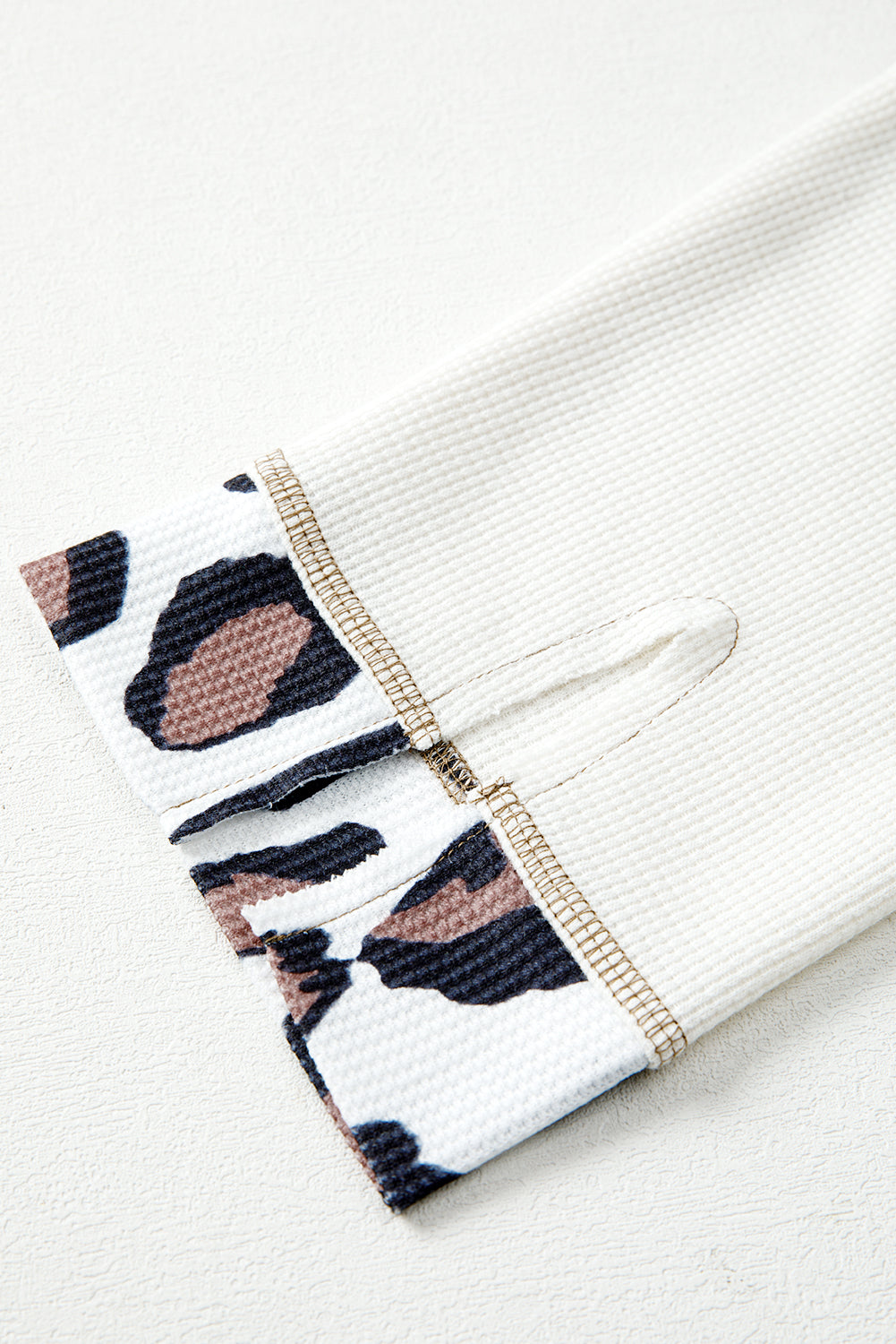 Leopard Waffle Knit Patchwork Zip Up Hoodie