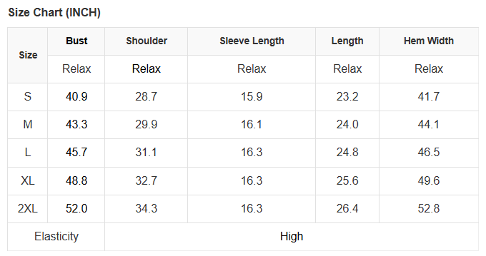 See size chart for approximate measurements.
