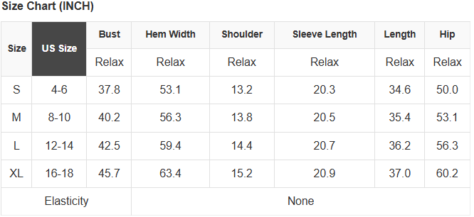 See size chart for approximate measurements.
