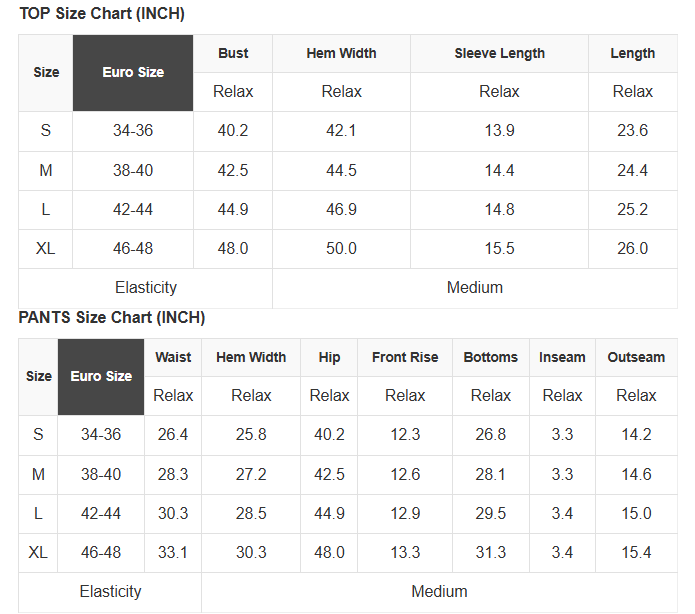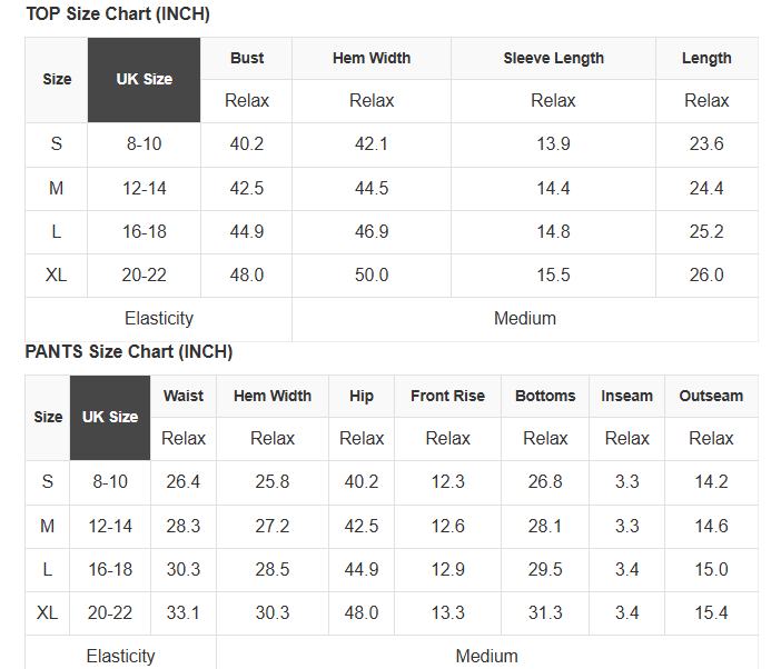 See size chart for approximate measurements.