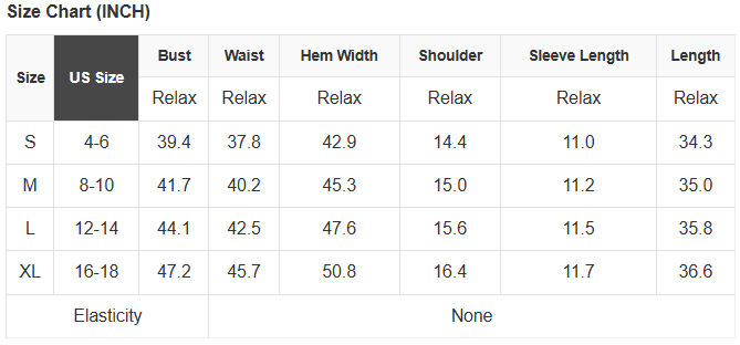 Size Info: See size chart for approximate measurements