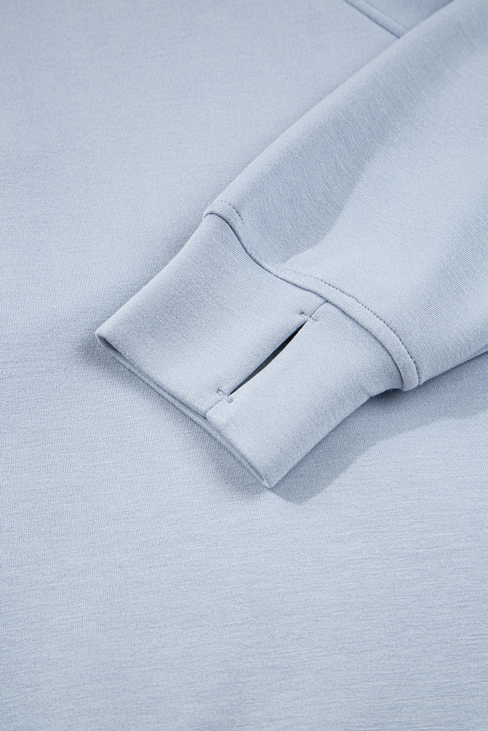 This two-piece active outfit features a hoodie with thumbhole sleeves and a kangaroo pocket, paired with loose drawstring pants that include convenient pockets. Crafted from soft, luxurious modal fabric and detailed with sleek scuba piping, it offers both comfort and a refined, sporty look—perfect for staying active with style. Polyester/Viscose/Spandex