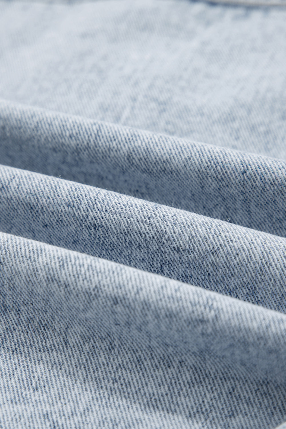 Add a touch of denim delight with this classic vest that effortlessly elevates any outfit. Crafted in a light wash, it features a charming round neckline, functional front pockets, and a convenient button-front closure. The scalloped edges bring a playful, whimsical touch that sets this piece apart, making it the perfect layering essential for those who love timeless style with a fun twist. Cotton/Polyester