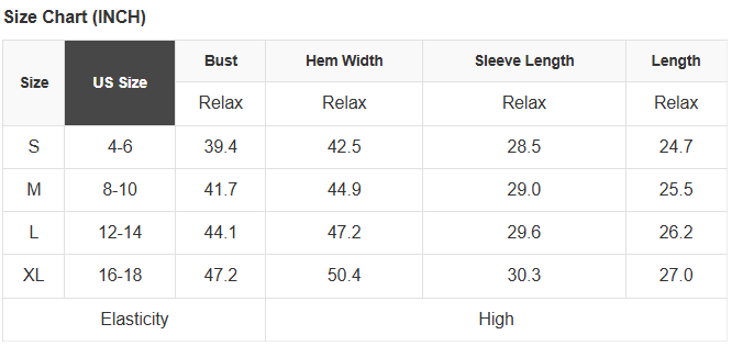 See size chart for approximate measurements.