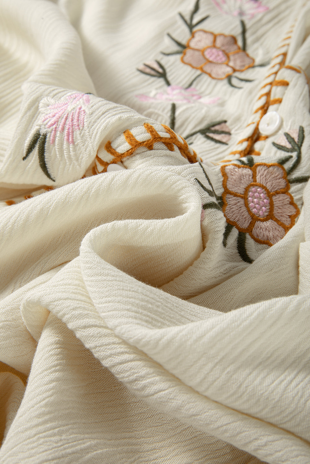 Floral Embroidered Textured Puff Sleeve Shirt
