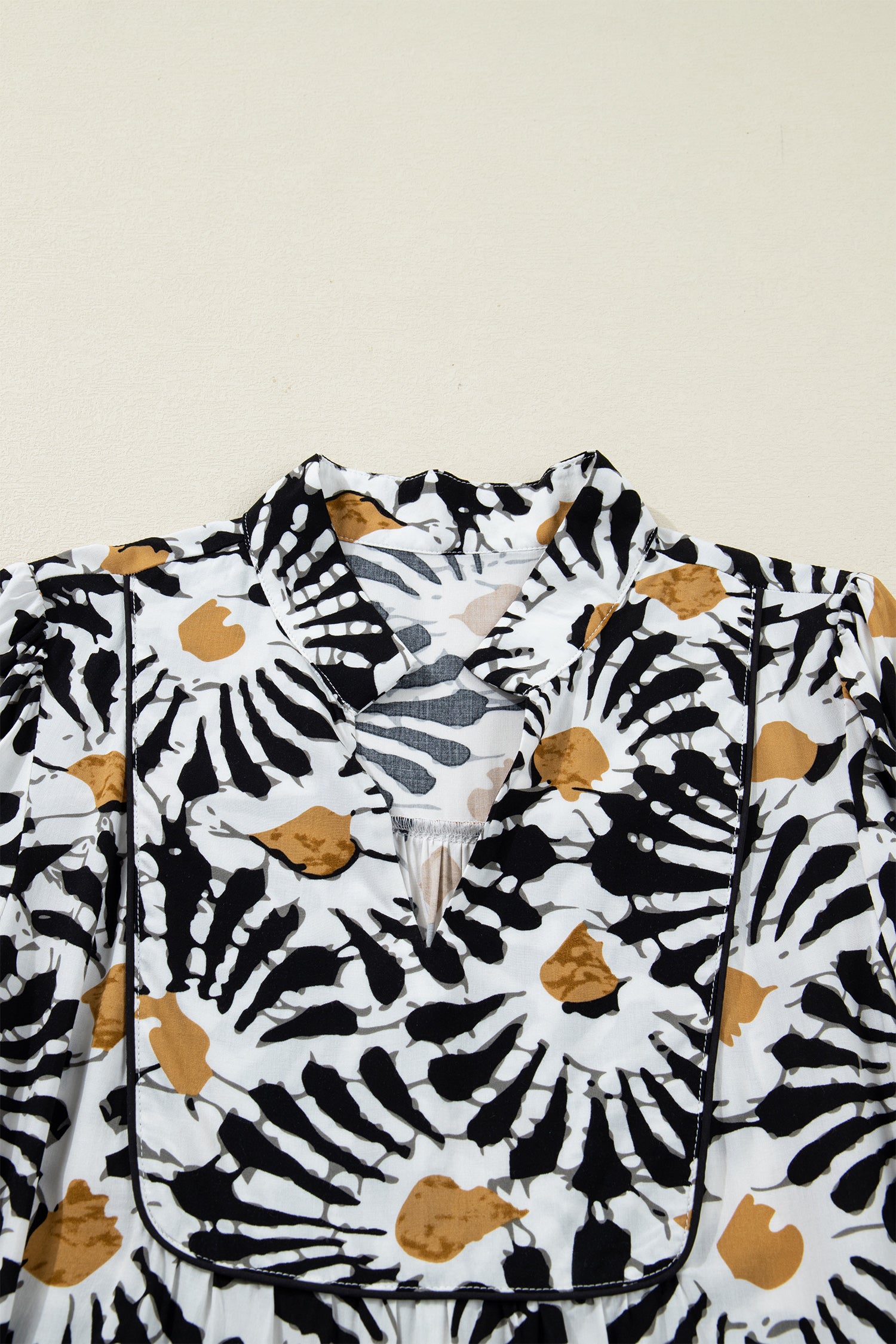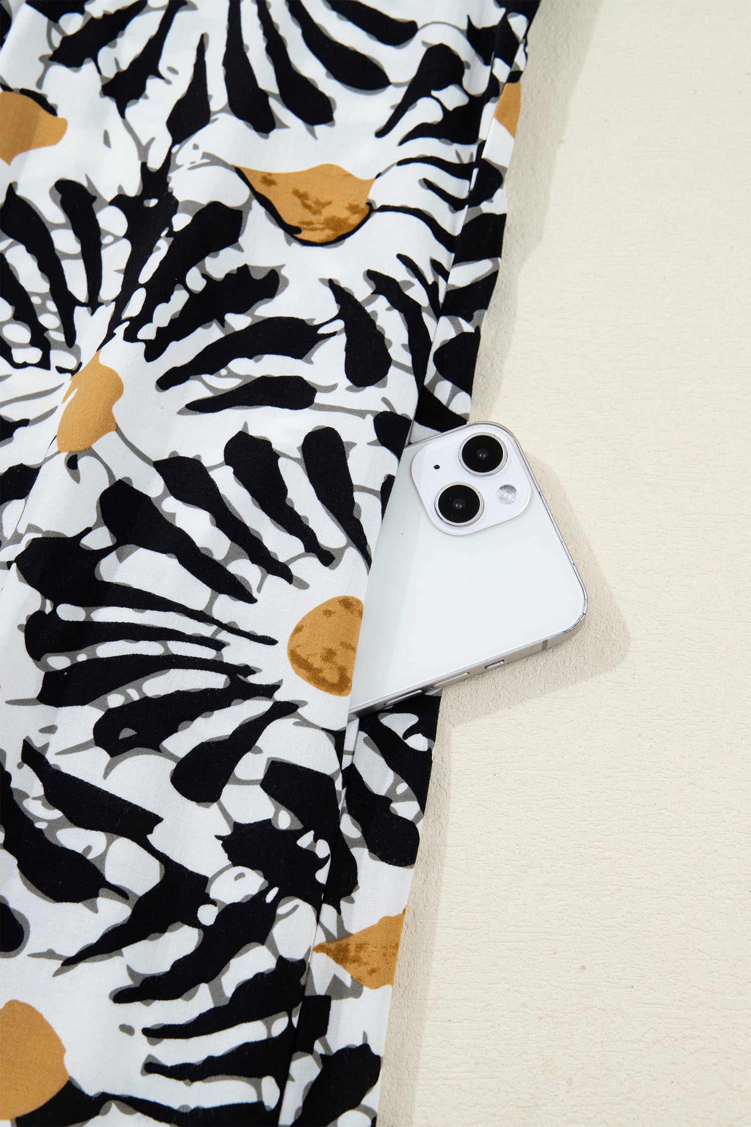 Abstract Floral V-Neck Long Sleeve Maxi Dress
