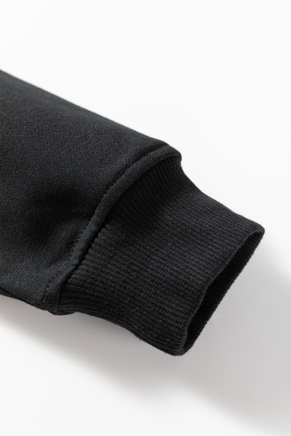 This two-piece set pairs a sleek crewneck pullover with a high-waisted mini skirt, both in a solid black accented by contrasting piping for a refined edge. The pullover offers effortless style with its easy, pull-on design, while the elastic waistband of the skirt ensures a comfortable, flattering fit. Perfect for versatile wear, this ensemble balances casual ease with polished detail. Polyester/Cotton