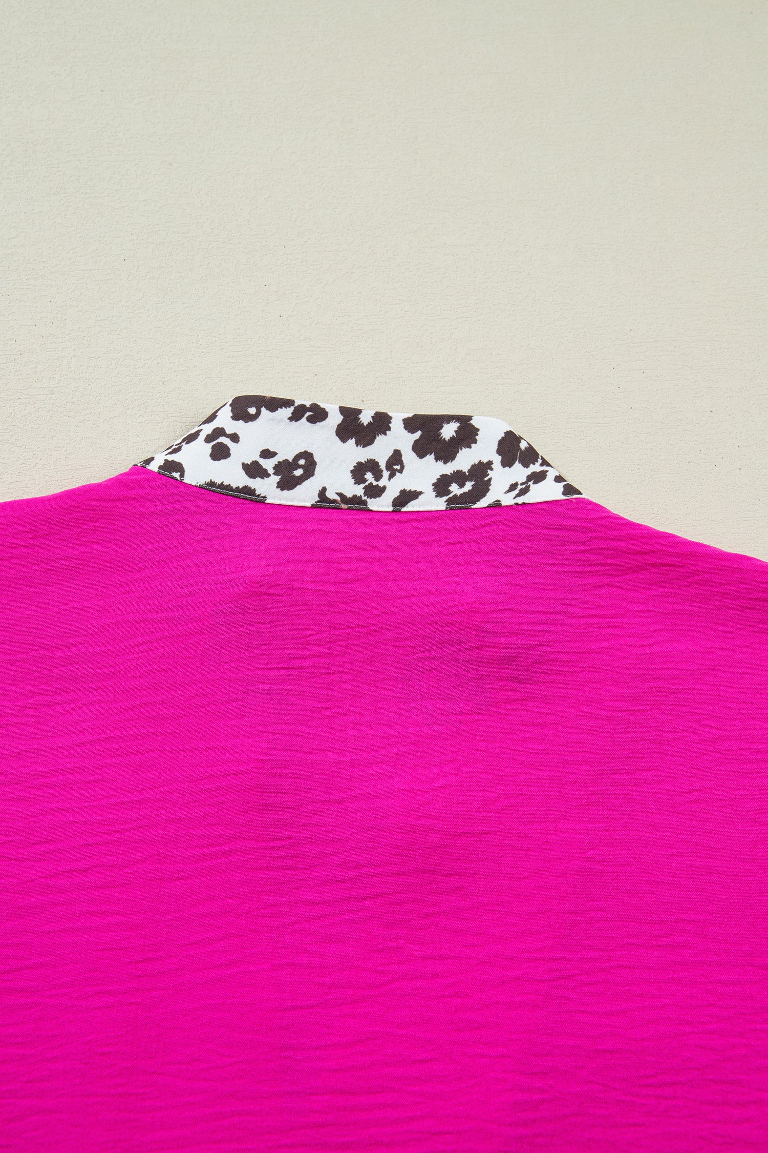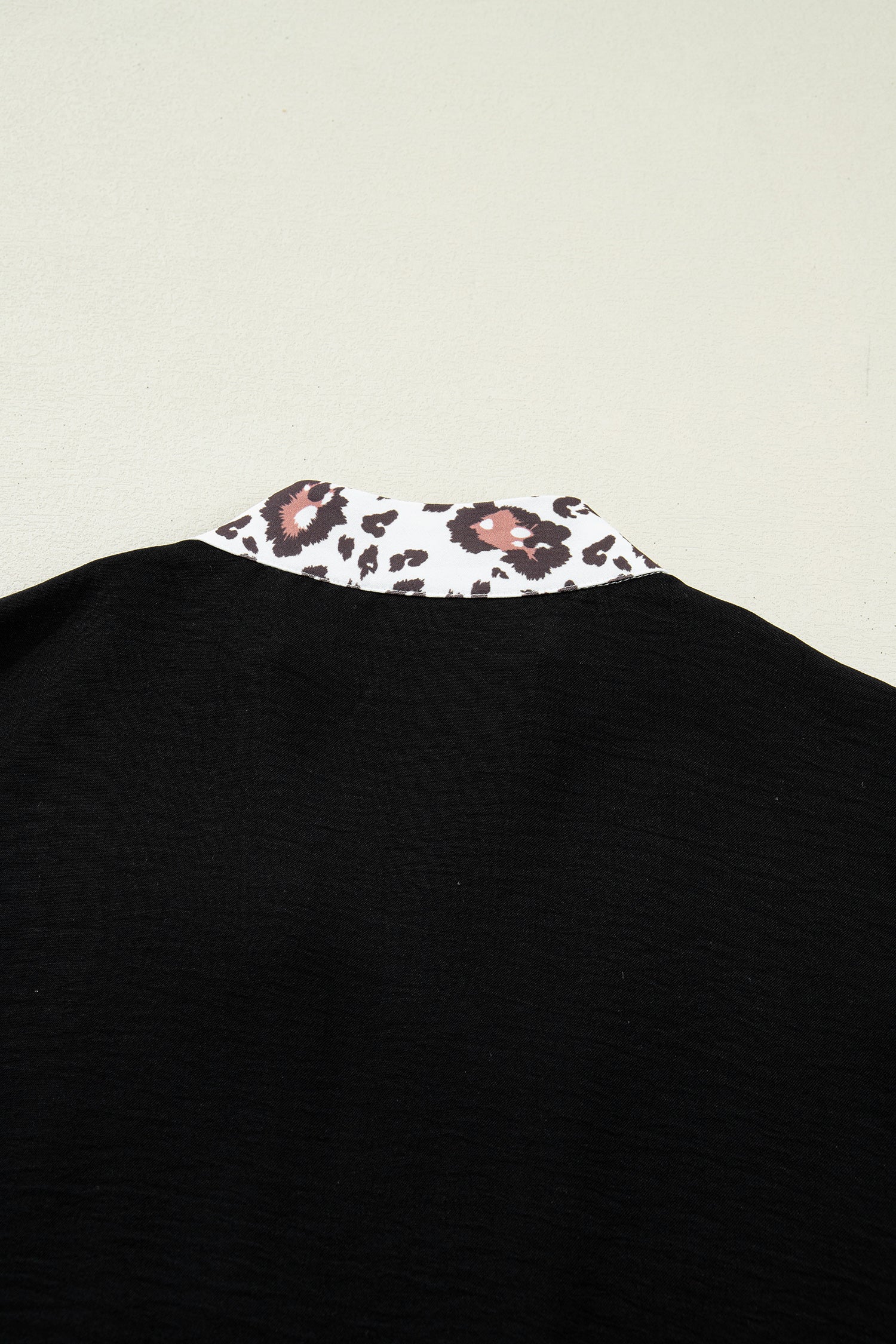 Leopard Patchwork Dolman Sleeve V-Neck Blouse
