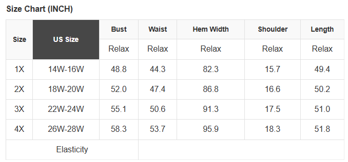 See size chart for approximate measurements.