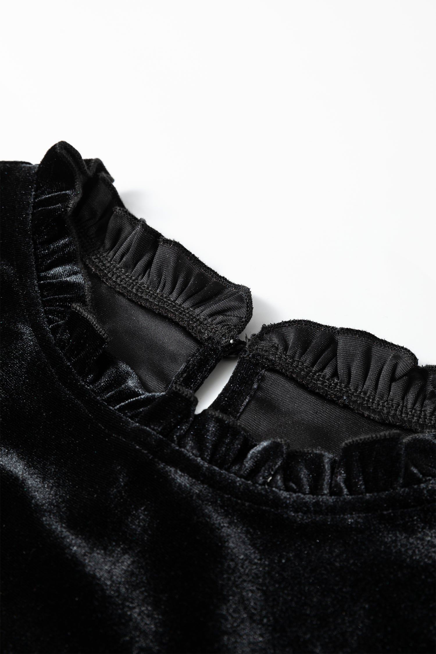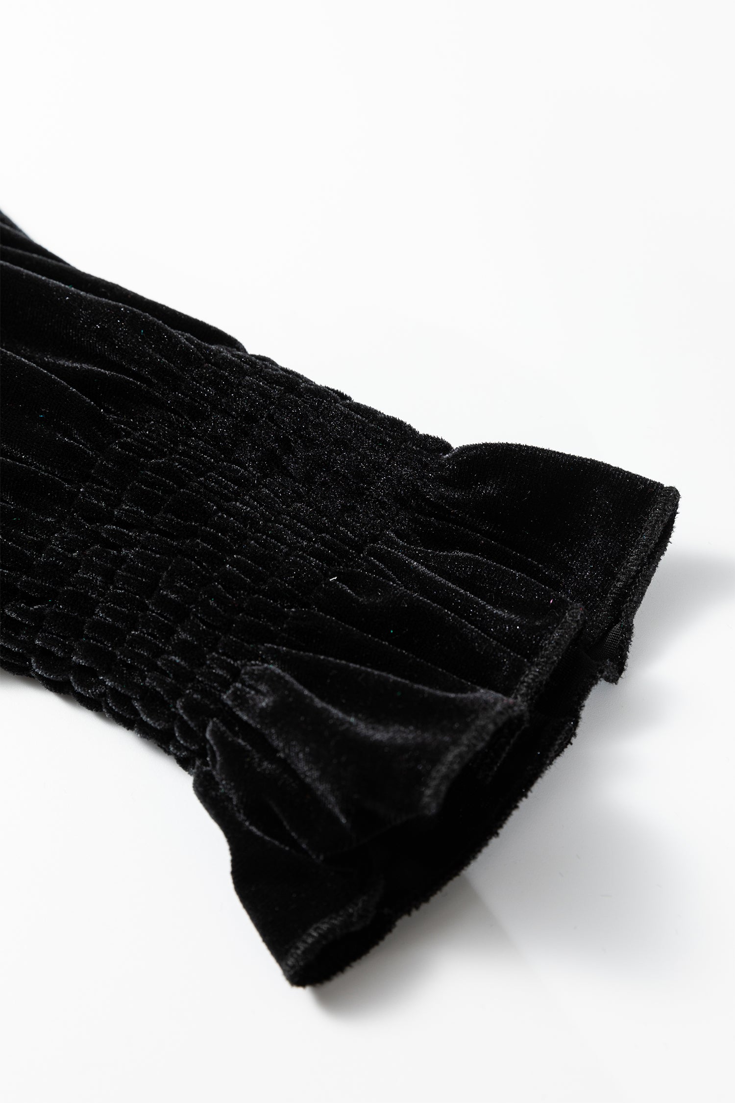 Solid Velvet Frilled Collar Smocked Puff Sleeve Blouse