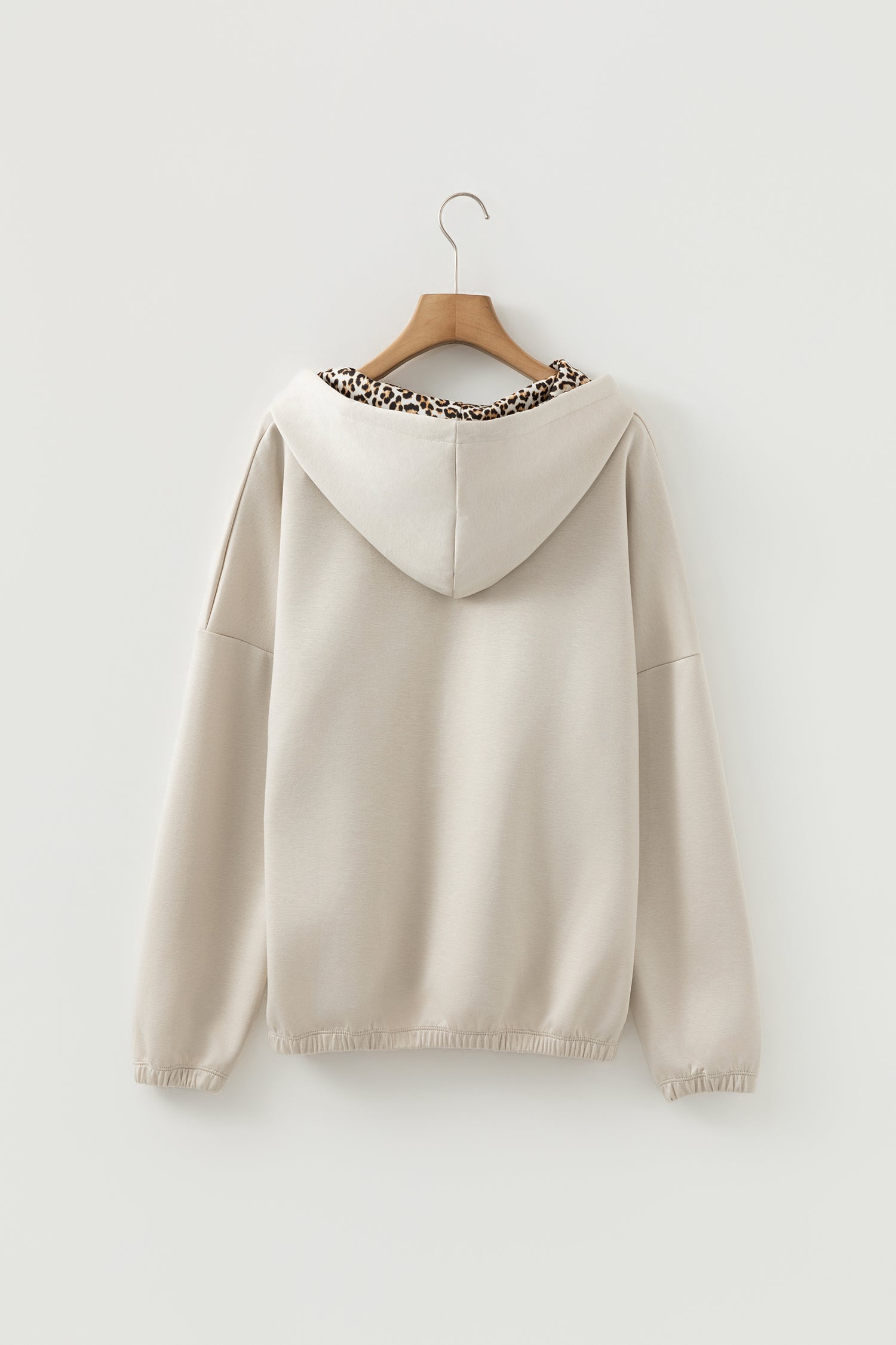 Elevate your casual wardrobe with this leopard contrast drawstring hood top. Featuring bold leopard details and a relaxed drop shoulder silhouette, it delivers effortless style perfect for everyday wear. The adjustable drawstring hood adds a sporty edge, while the versatile design pairs seamlessly with jeans, leggings, or shorts. A must-have piece for those who love trendy, laid-back fashion. Polyester/Viscose/Spandex