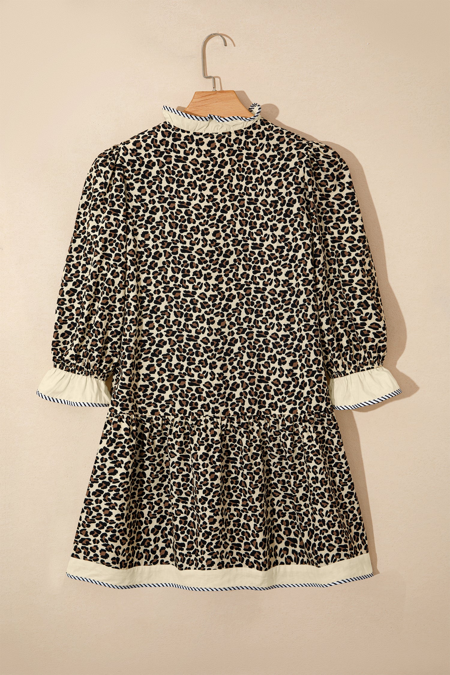 Leopard Stripe Colorblock Trim V-Neck Mini Dress