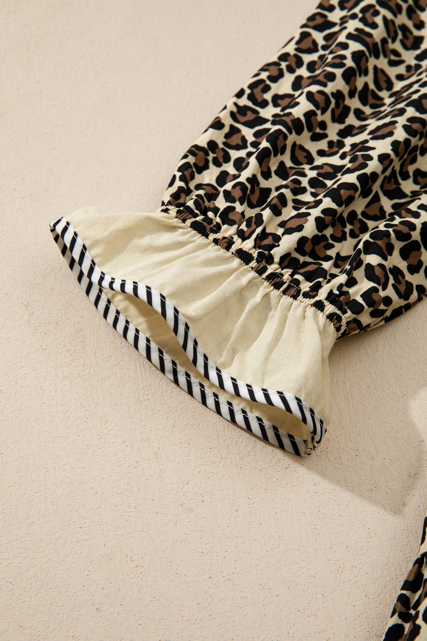 Rock a wild look with this Mini Dress! The bold leopard print makes a statement, while the modern striped color block trim adds just the right amount of contemporary edge. The flattering V neckline works beautifully for both casual hangouts and dressier moments, and the bracelet sleeves deliver elegant coverage with a relaxed, feminine vibe. Perfect for anyone ready to bring some fierce, trendy energy to their everyday style. Cotton/Viscose