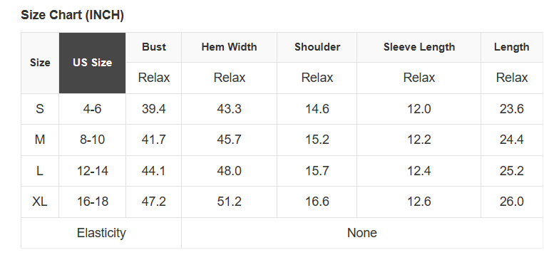 See size chart for approximate measurements.