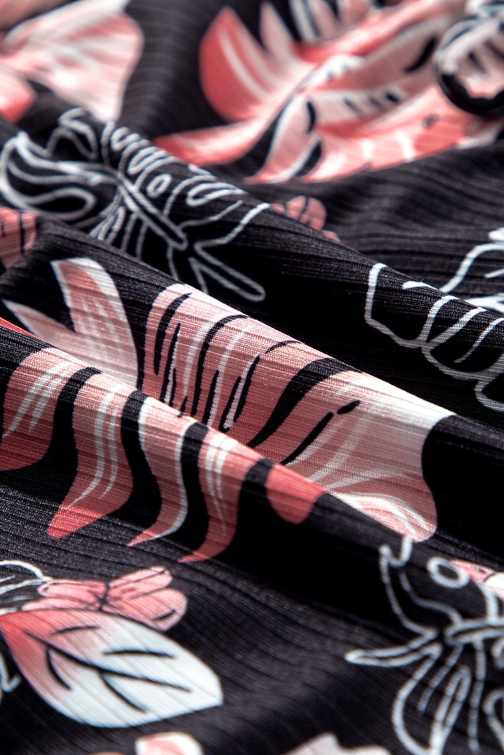 Tropical Colorblock Ribbed High Waist Bikini Swimsuit