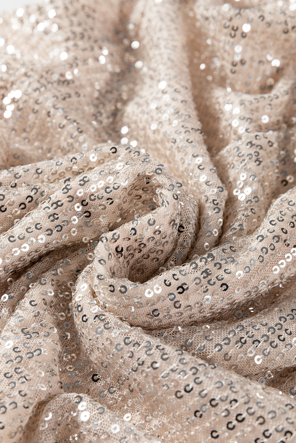 Make a statement in this top, designed to captivate with shimmering sequins and an alluring drape open back. The mock halter neckline secures with a button for a polished finish, while long sleeves with bell cuffs add a sophisticated, dramatic flair. Its flattering fit ensures an elegant silhouette, perfect for standing out at any event. Polyester/Spandex