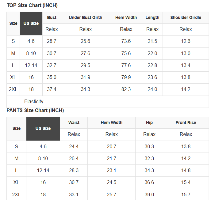 See size chart for approximate measurements.