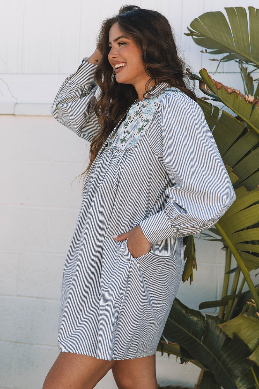 Stripe Floral Patchwork Tied V-Neck Mini Dress