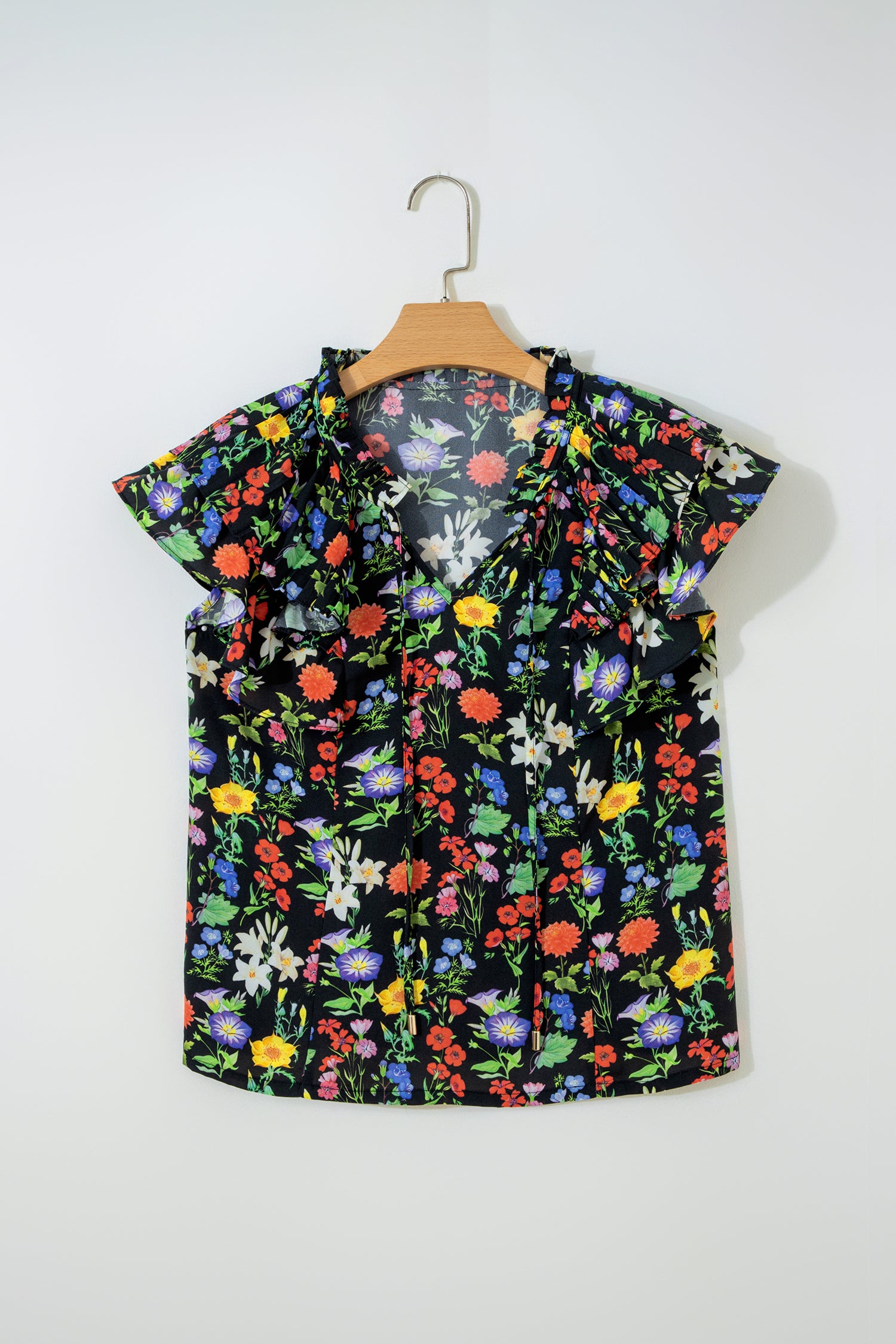 Flower Tiered Flutter Sleeve V-Neck Blouse
