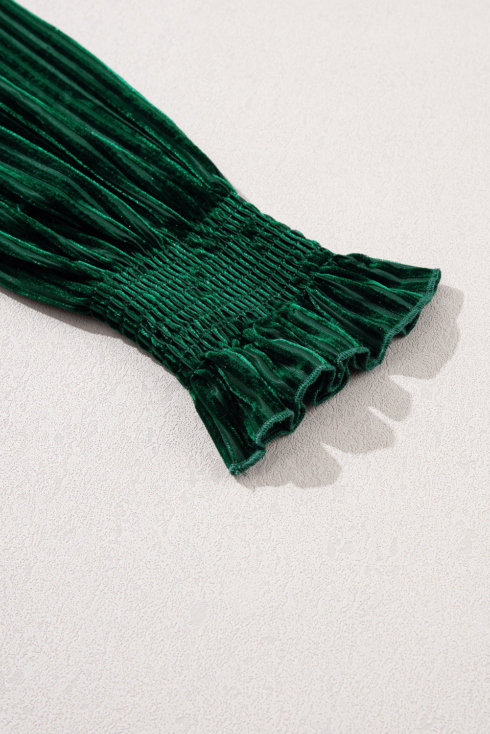 Ribbed Velvet Smocked Babydoll Blouse