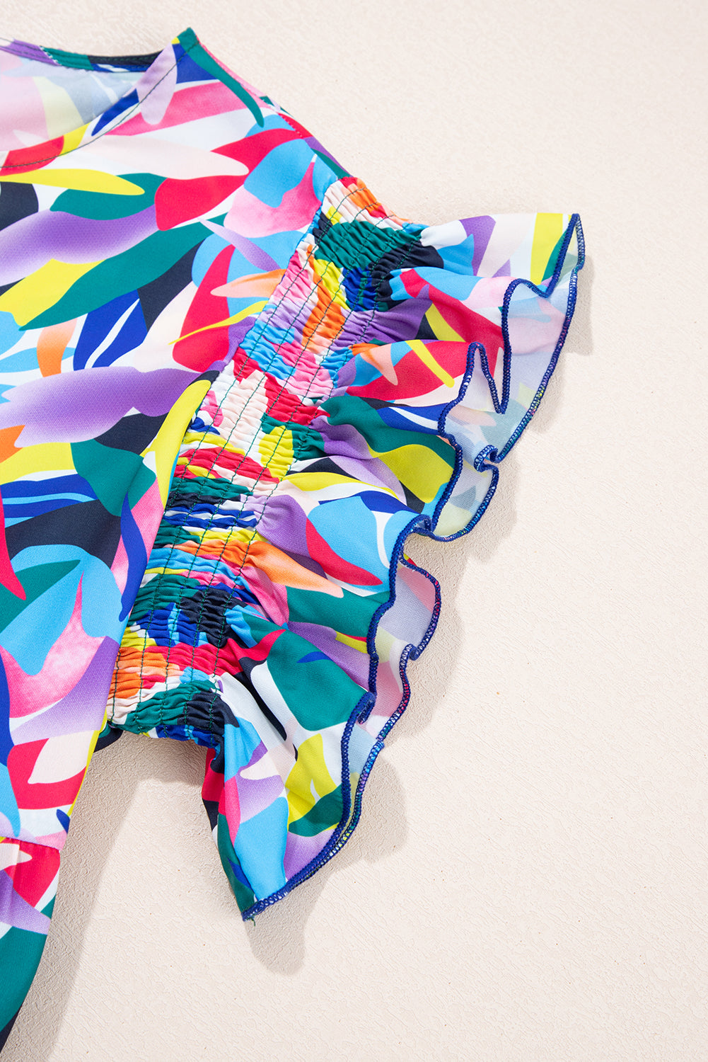 Plus Size Geometric Ruffle Sleeve Maxi Dress