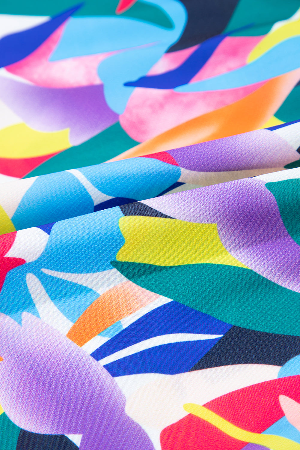 Step into summer style with this vibrant maxi dress designed for confident curves! The lightweight, breathable fabric keeps you cool while the playful tropical colors bring instant joy to your wardrobe. Flattering details include a high-waist tiered silhouette that skims beautifully, charming ruffle sleeves, and a classic round neckline. The relaxed, loose fit ensures all-day comfort without compromising on style. Perfect for beach getaways, casual outings, or whenever you want to feel fabulous and free! 100% Polyester