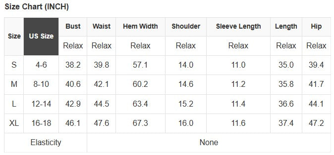 See size chart for approximate measurements.