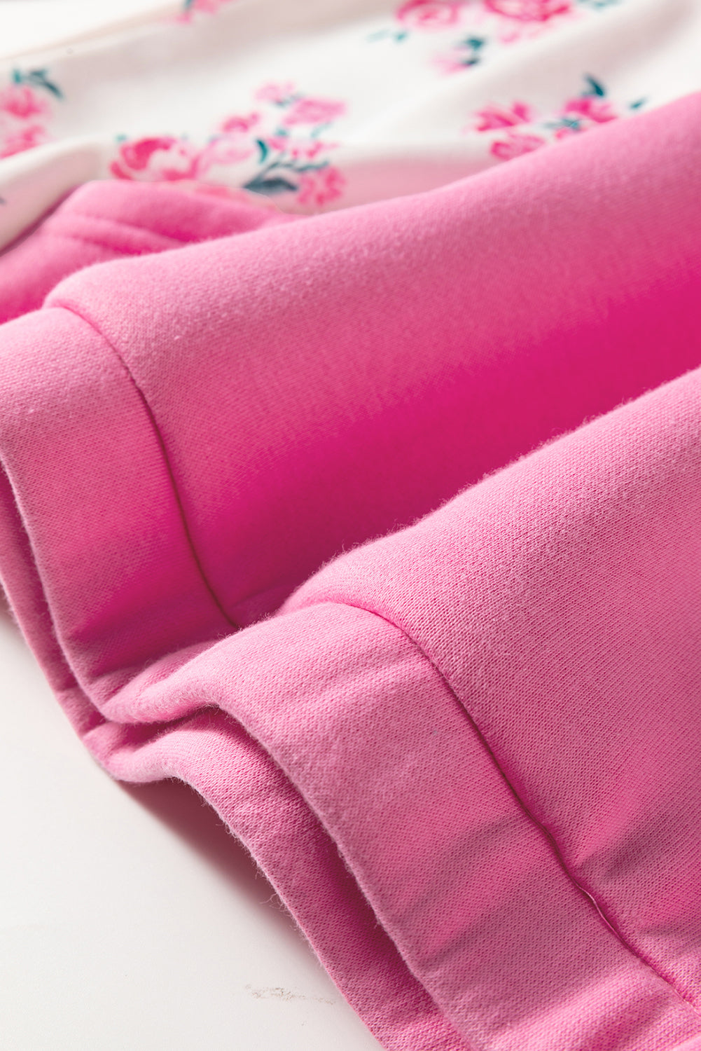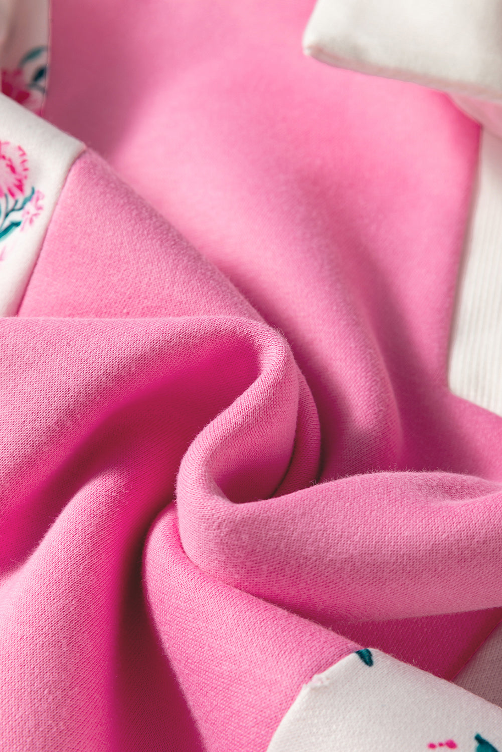 Floral Colorblock Patchwork Puff Sleeve Collared Top