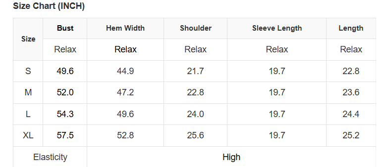 See size chart for approximate measurements.