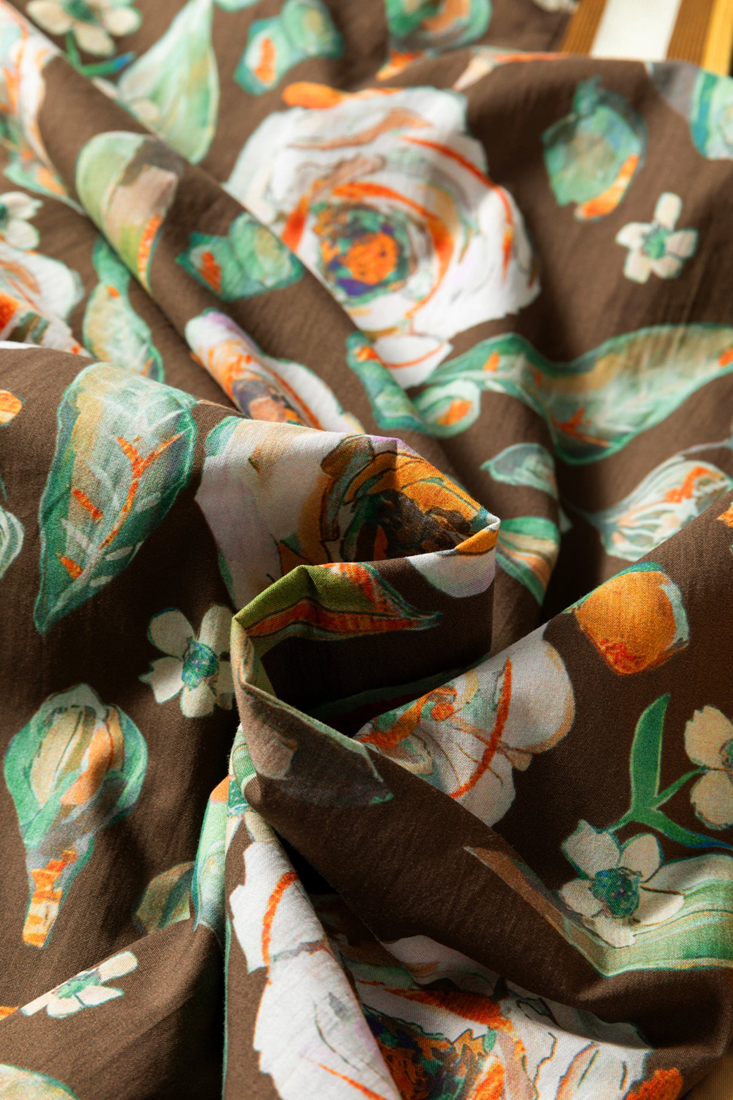 Step into vintage vibes with this charming floral mini dress that's equal parts nostalgic and modern. Crafted from breathable cotton, it keeps you cool and comfortable all day long. The playful V-neckline features striped contrast trim that adds an unexpected pop of personality, while voluminous balloon sleeves bring drama and movement without sacrificing airiness. Perfect for those who love a little retro flair with contemporary edge. 100% Cotton