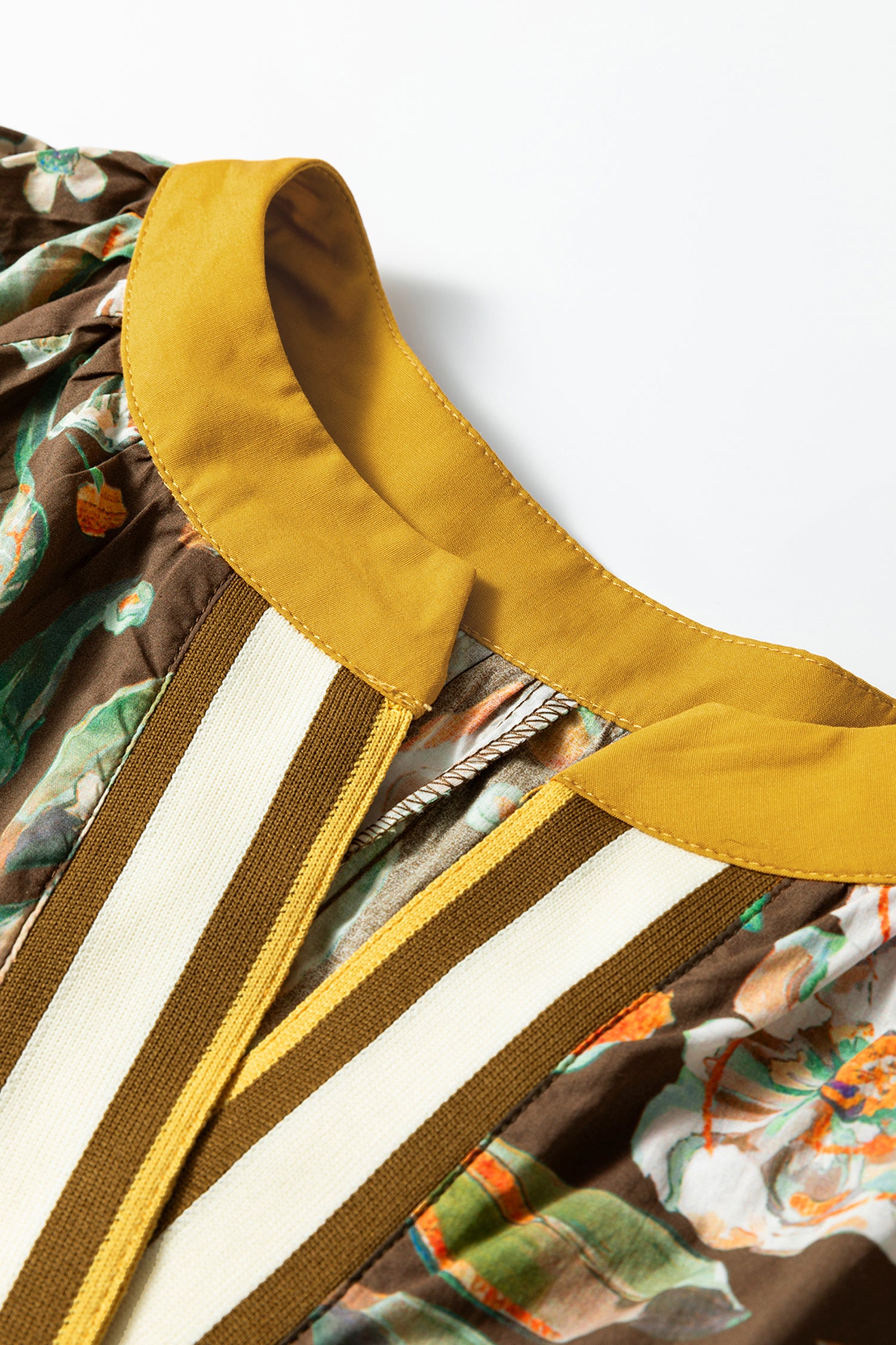 Floral Contrast Trim V-Neck Long Sleeve Pocketed Dress