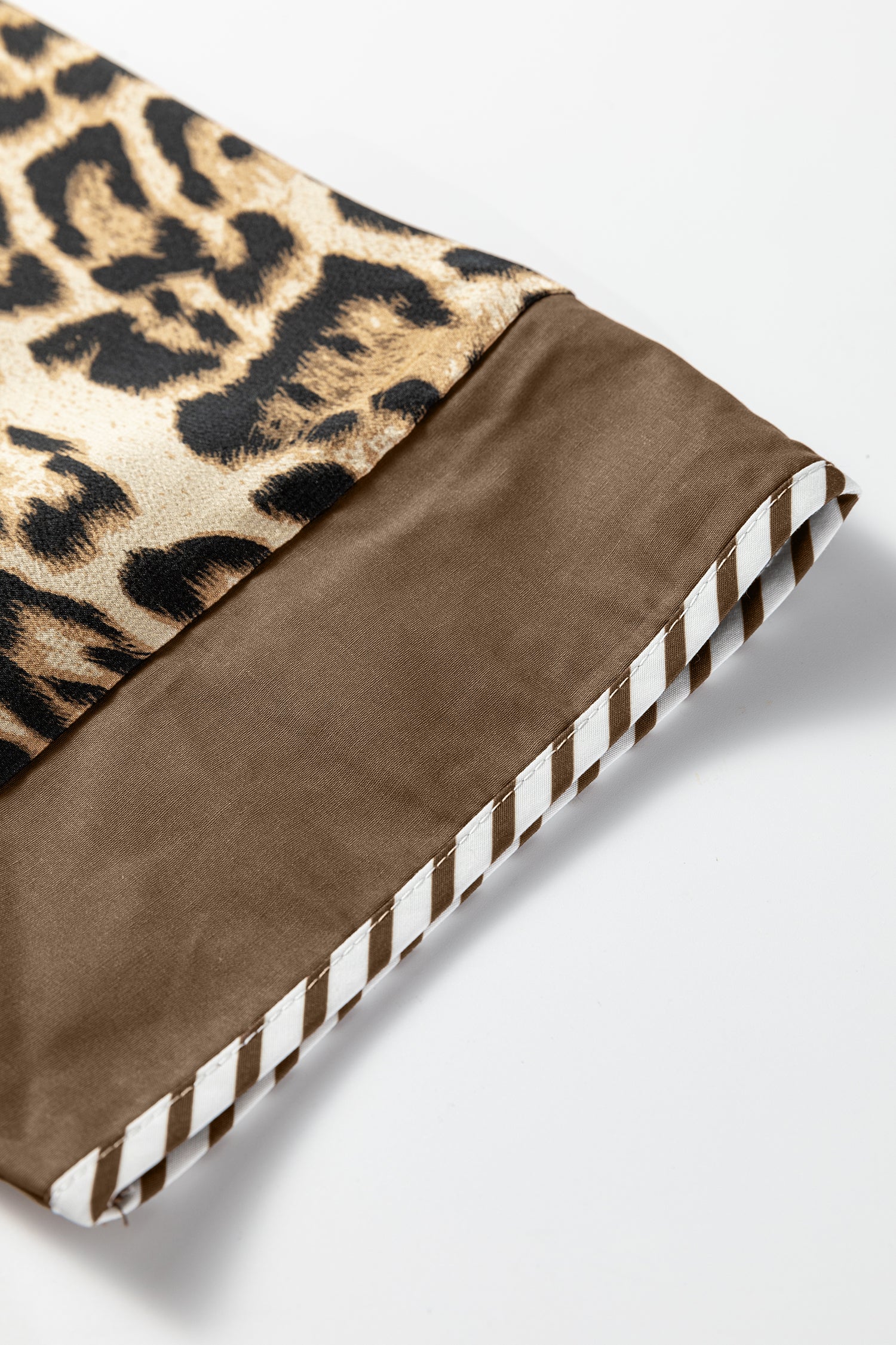 Leopard Collared 3/4 Sleeve Shirt and Pants Set