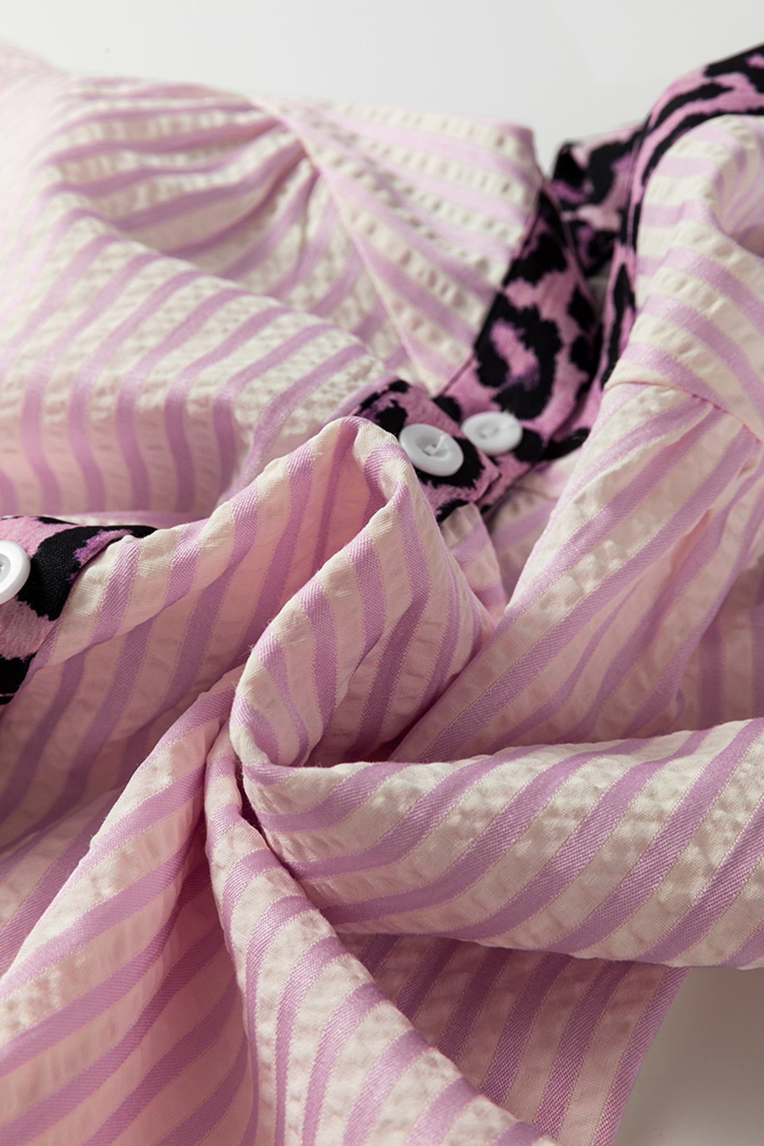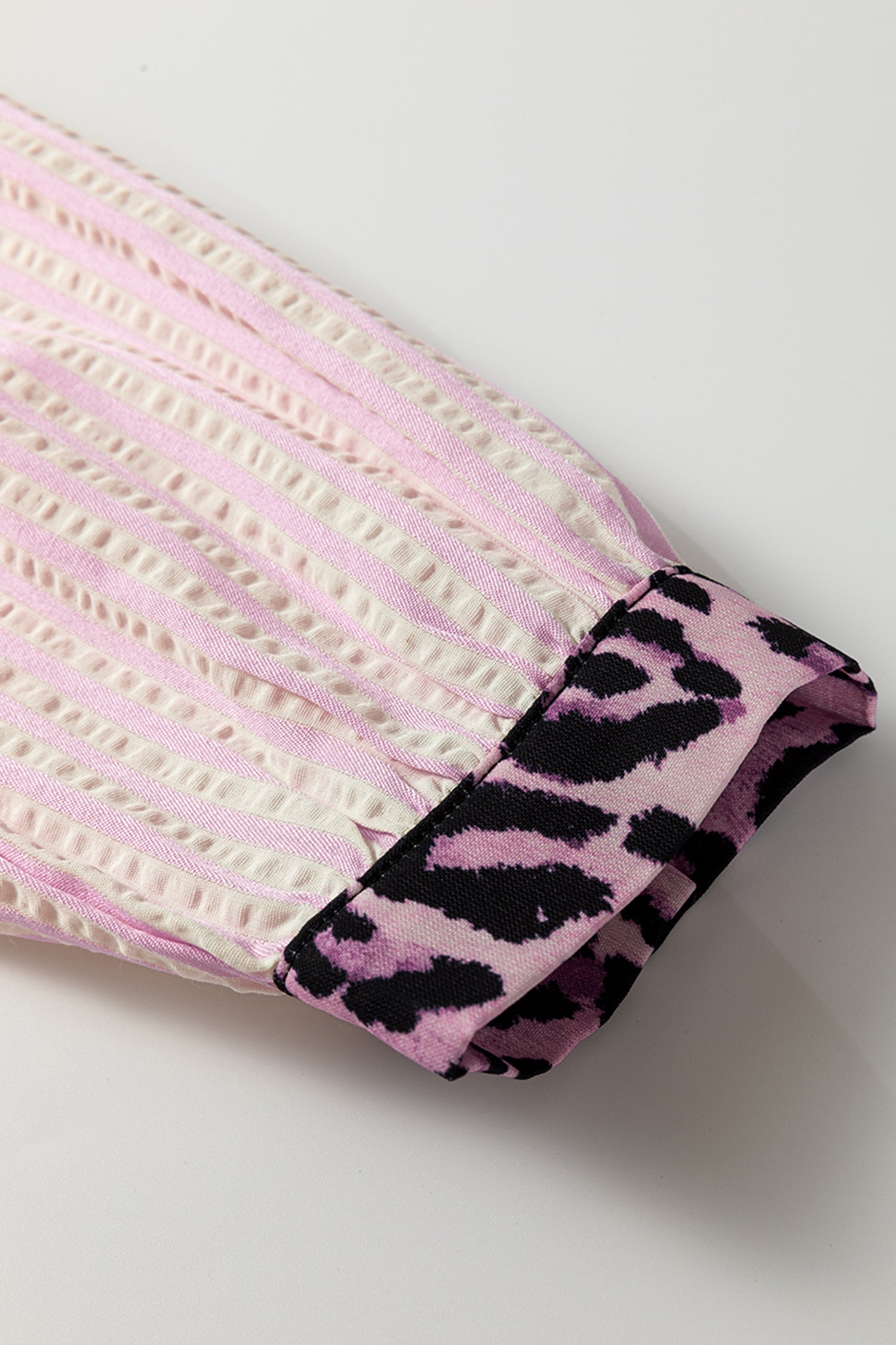 Stripe Leopard Patchwork Long Sleeve Shirt