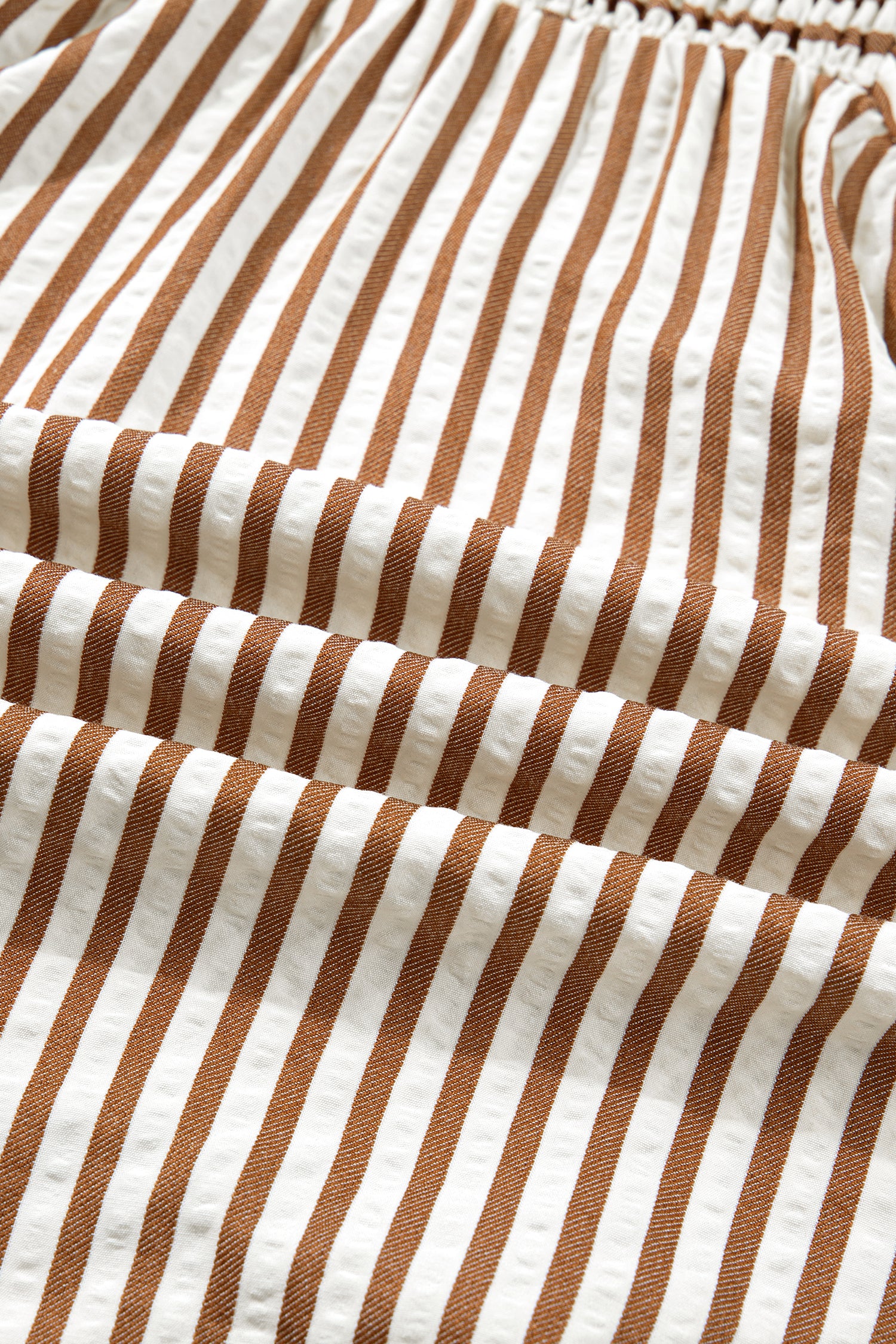 Elevate your fall style with this charming striped blouse that effortlessly blends comfort and character. The flattering babydoll silhouette pairs beautifully with delicate shirred detailing at the v-neckline, while short puffy sleeves add a whimsical touch. Perfect for casual weekday wear or weekend adventures, this versatile piece brings playful sophistication to any outfit. Polyester/Viscose