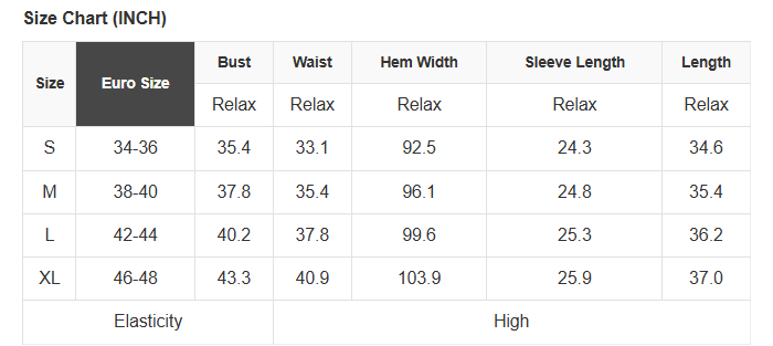 See size chart for approximate measurements.