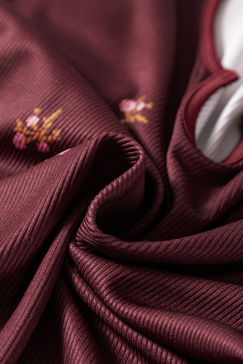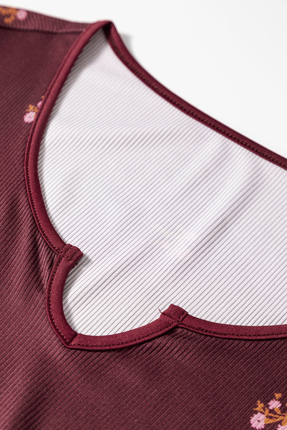 Floral Ribbed Notched Neck Long Sleeve Top