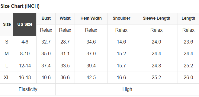 See size chart for approximate measurements.