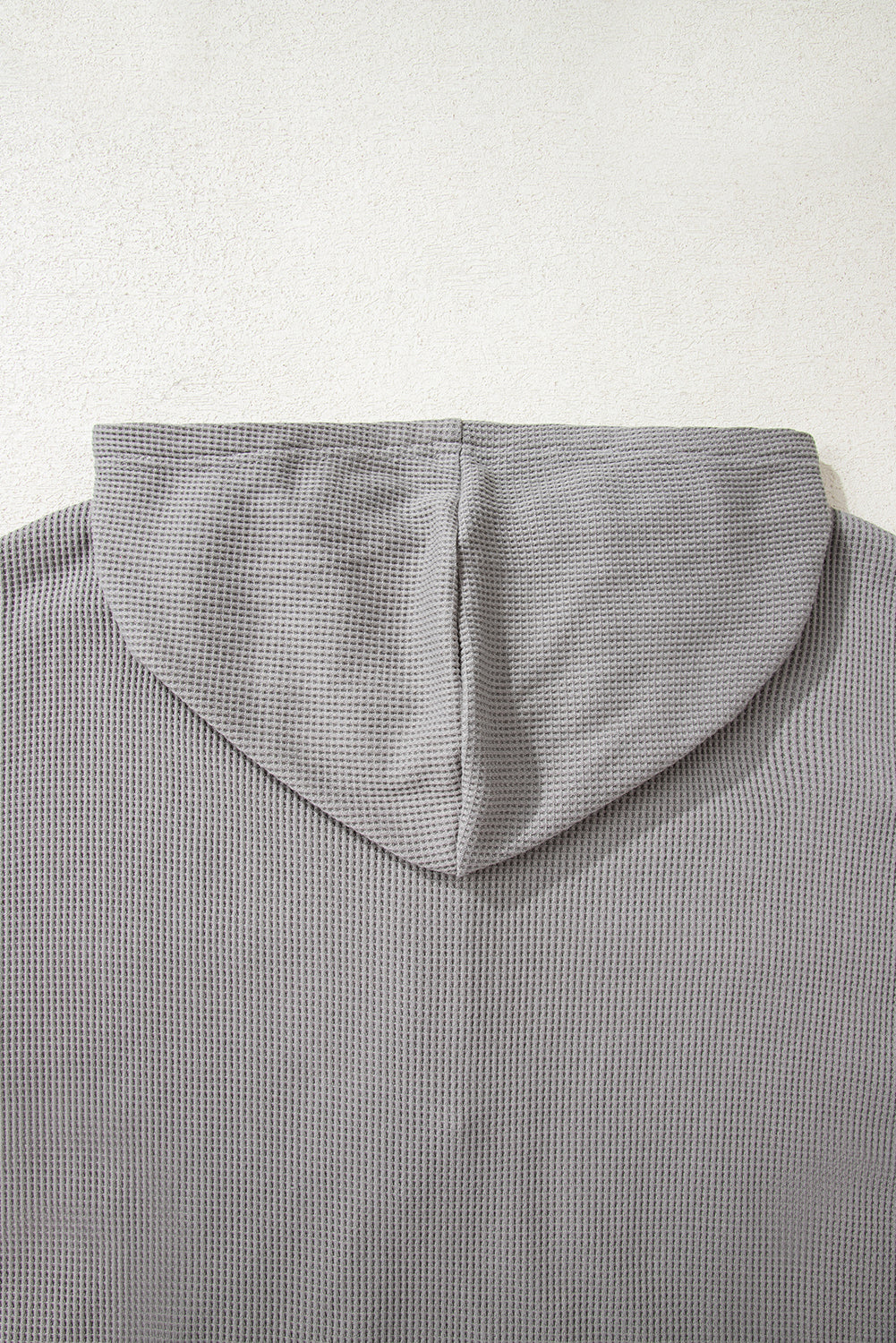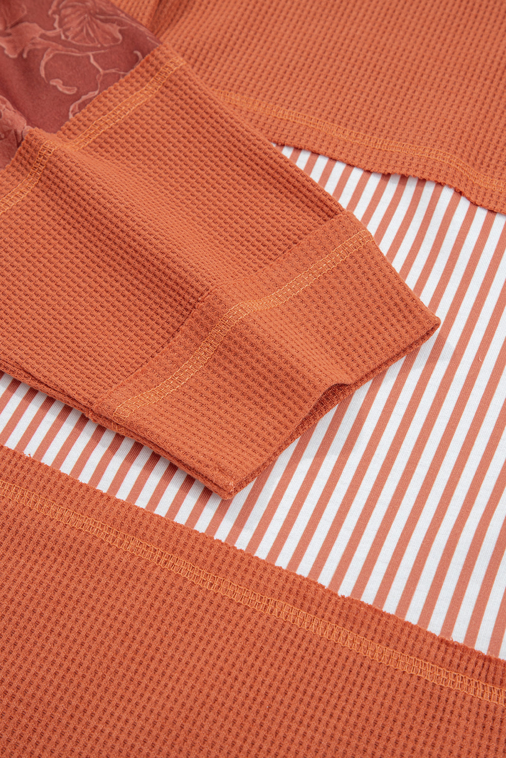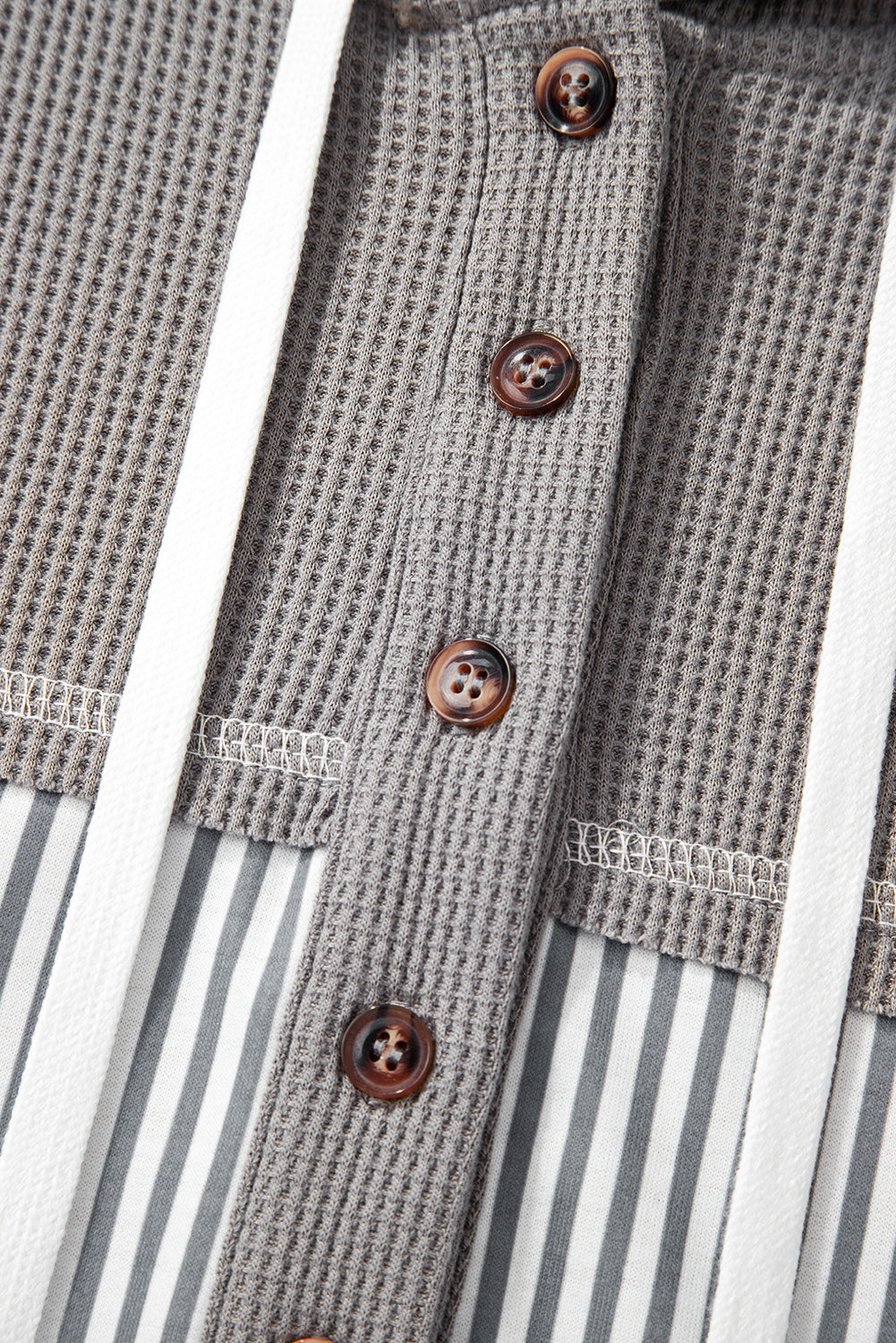 Stripe Waffle Patchwork Hooded Long Sleeve Top