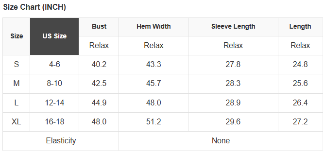 See size chart for approximate measurements