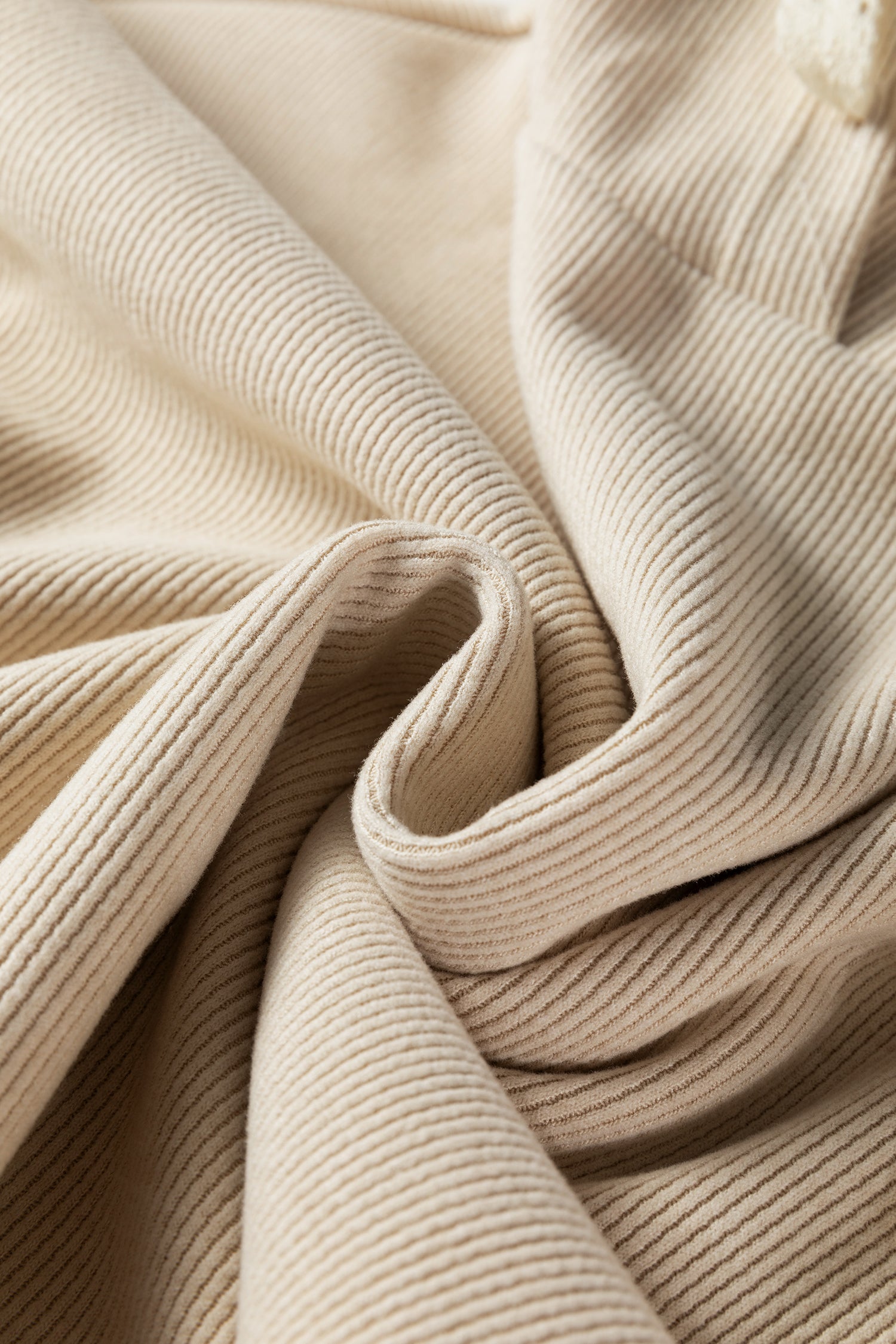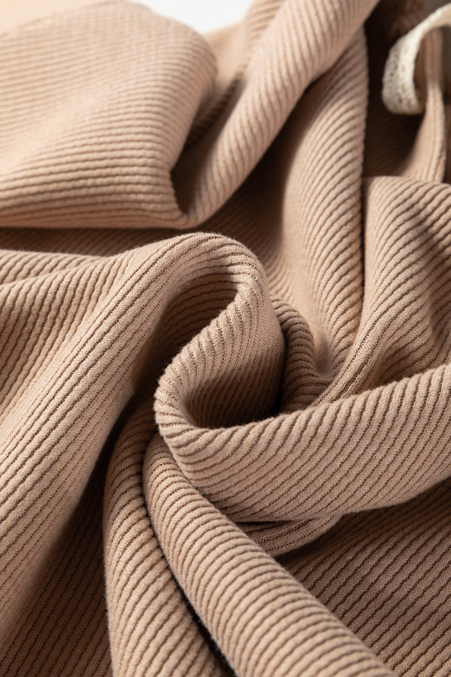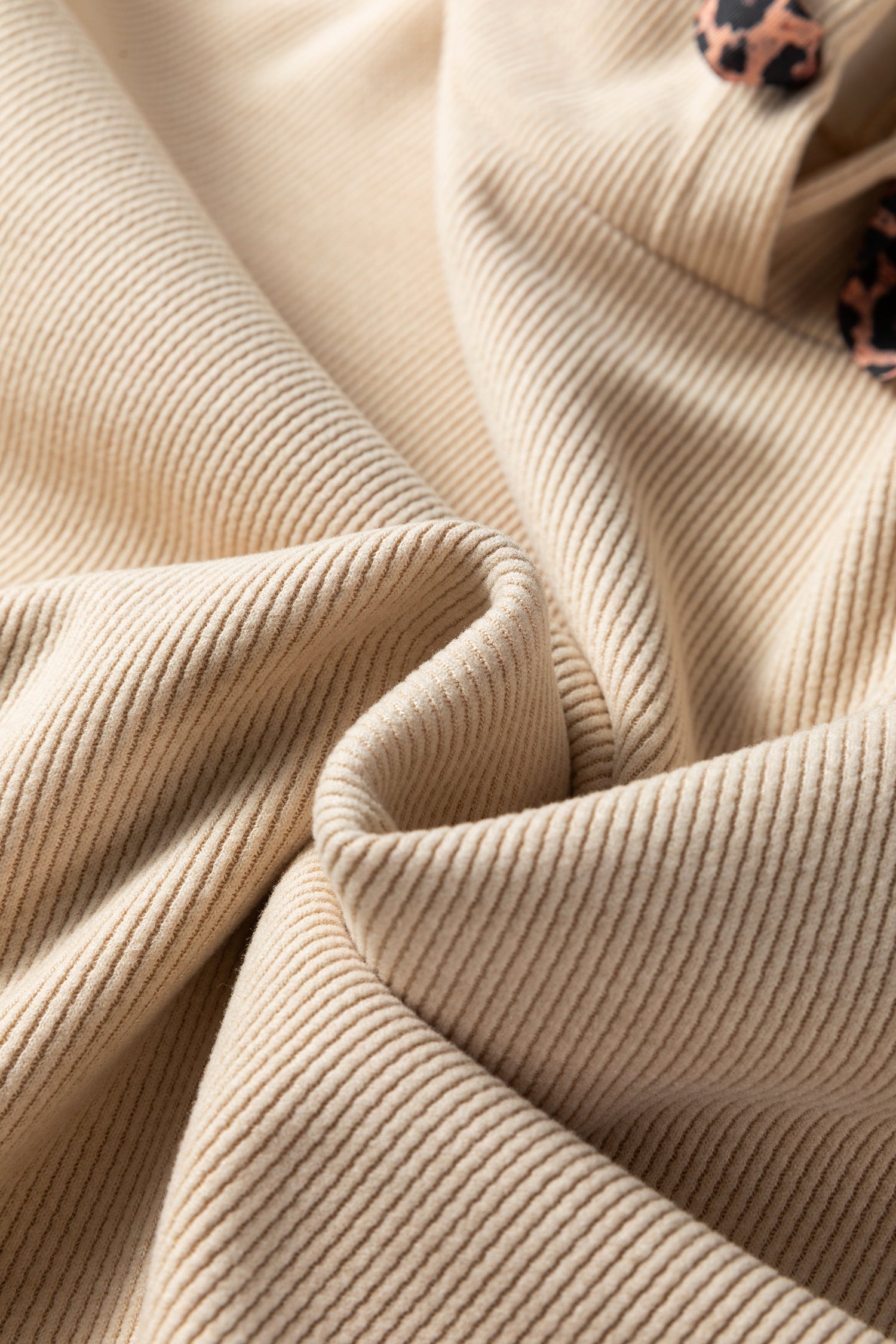 Ribbed Knit Leopard & Lace Drawstring Hoodie