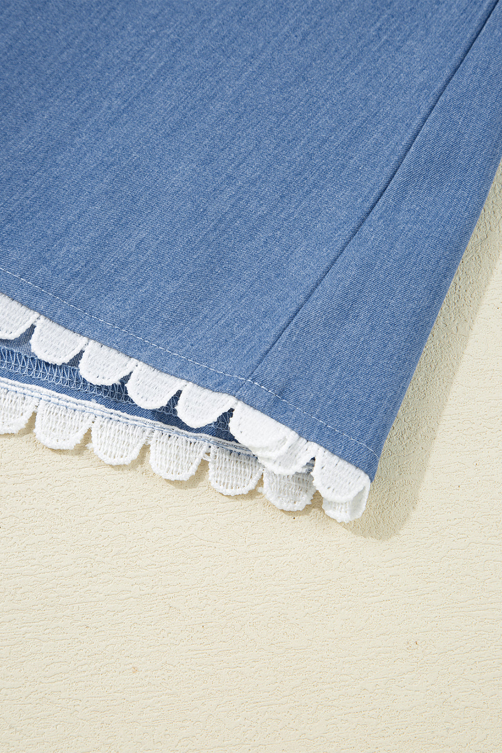 Solid Lace Ric-Rac 3/4 Sleeve Babydoll Blouse