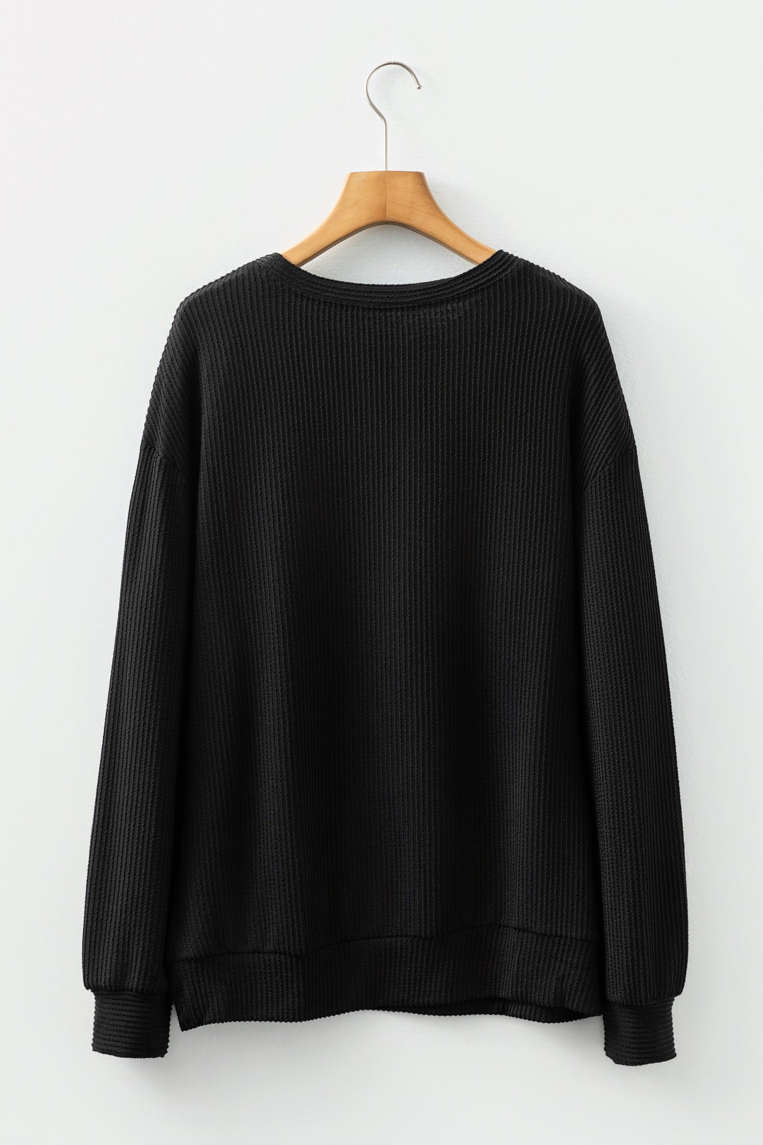 Celebrate the festive season in style with this top. Its baggy fit and dropped shoulder design flatter all shapes, while the classic round neck adds timeless charm. Crafted from quality fabric with a trendy twisted rib texture, this playful top brings cozy comfort and holiday cheer to your wardrobe. Perfect for spreading merry vibes wherever you go! Polyester/Viscose/Spandex