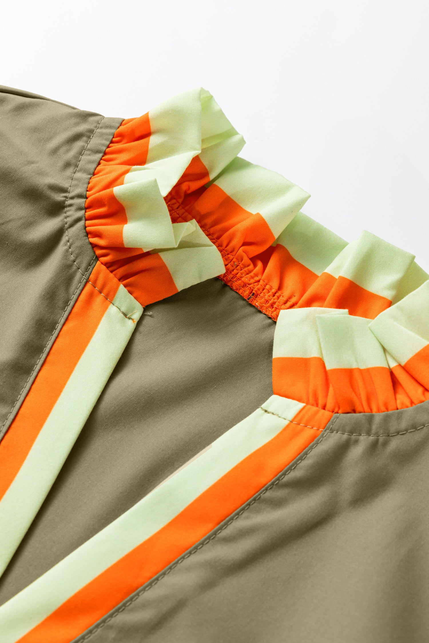 Stripe Trim Ruffle Split Neck Long Sleeve Blouse