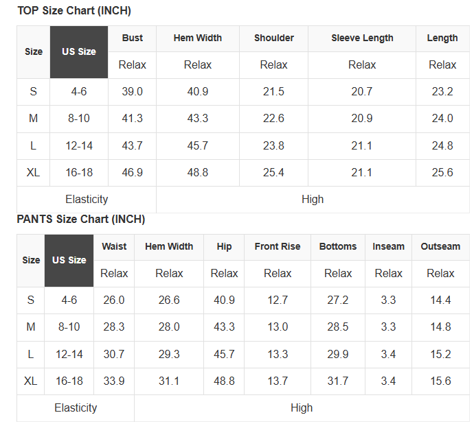 See size chart for approximate measurements.