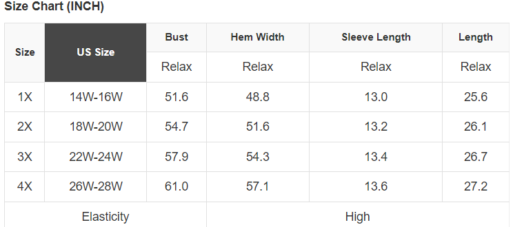 Plus Size Info: See size chart for approximate measurements
