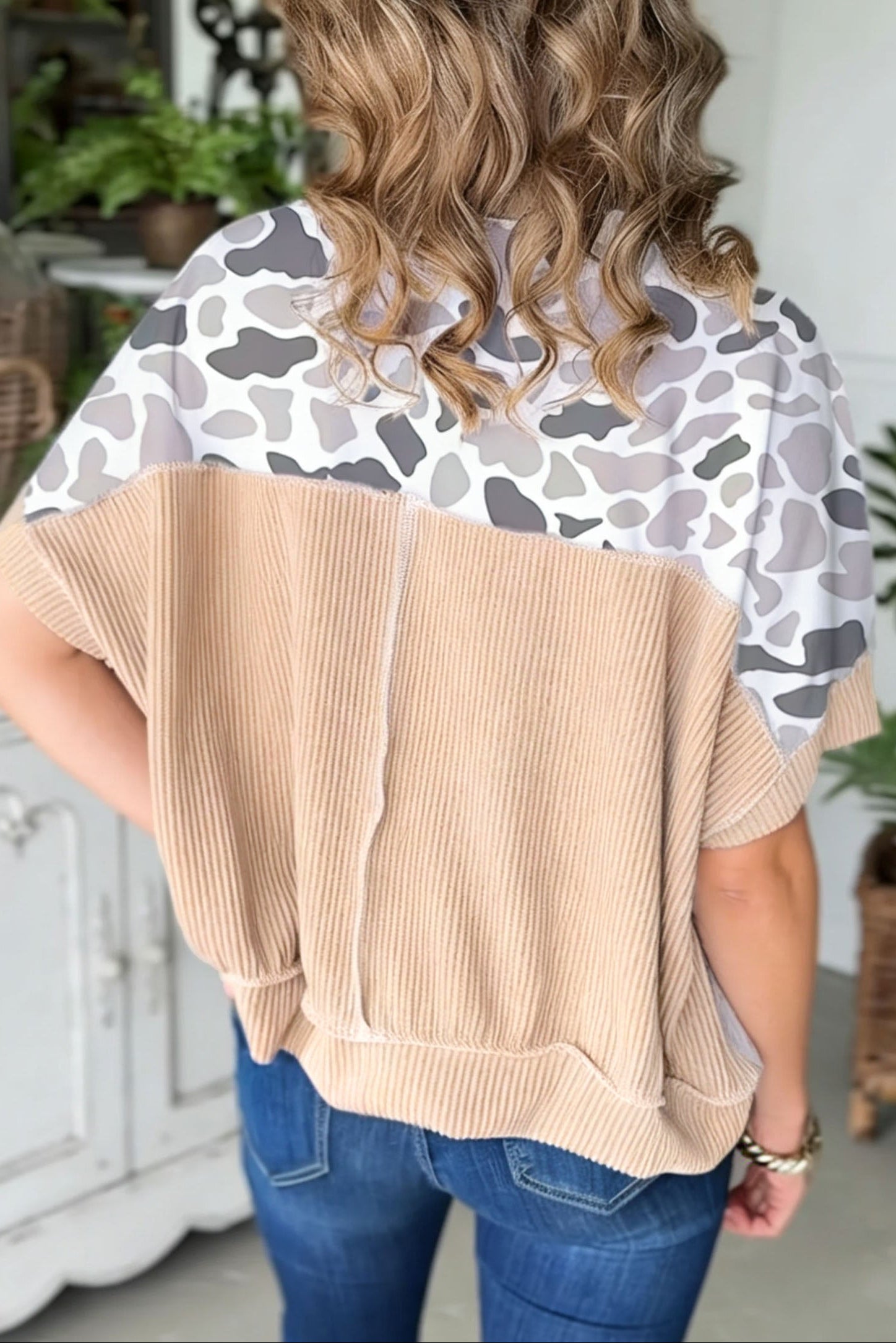 Camo Patchwork Corded Knit Short Sleeve T-Shirt