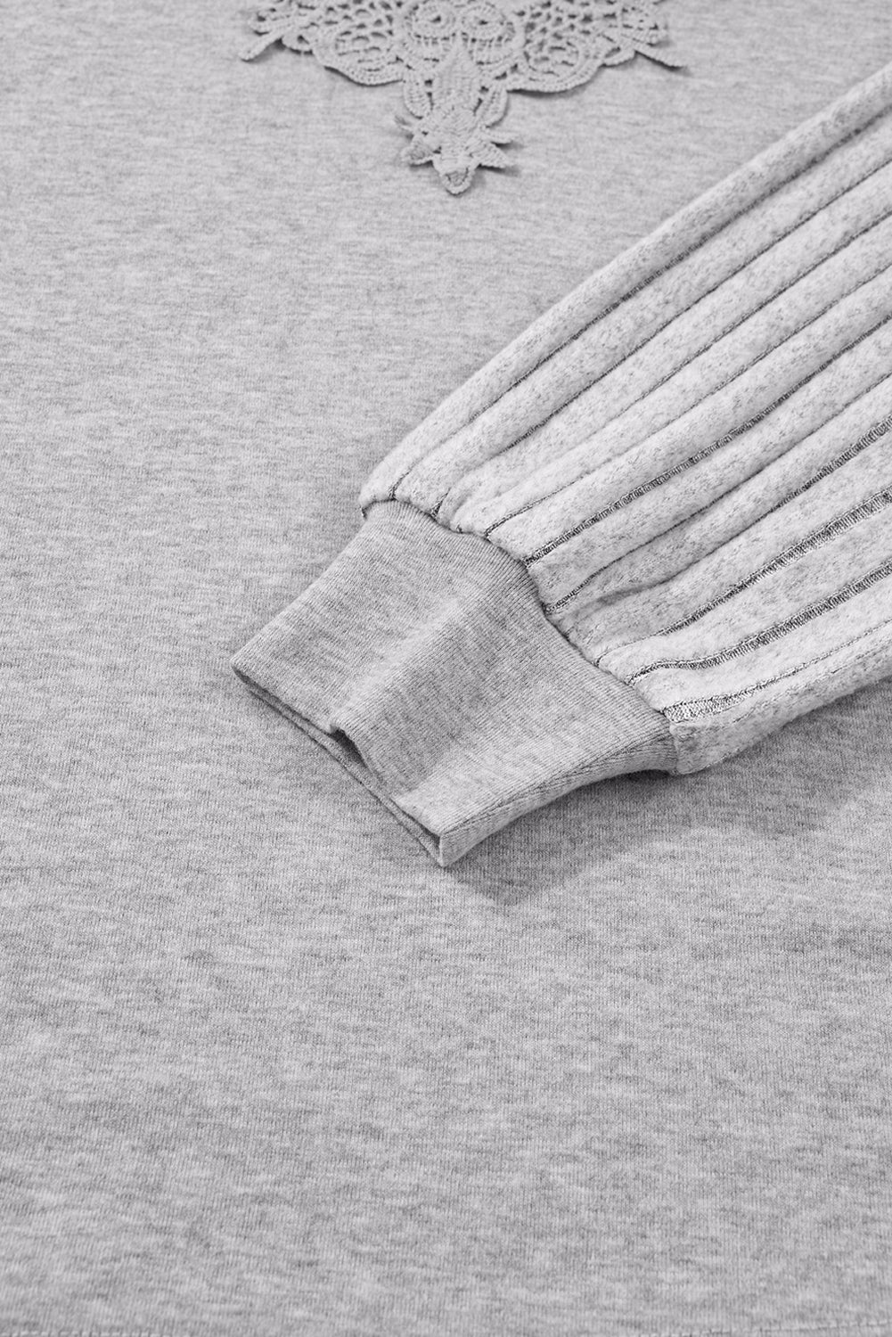 Embrace effortless charm with this top. The delicate lace adds a flirty peek-a-boo effect, while the sleeves bring a playful texture twist. Its soft, stretchy fabric lets the top drape beautifully, flattering your silhouette and keeping you comfy all day long. Perfect for adding a fun, cozy vibe to any outfit! Polyester/Viscose/Spandex